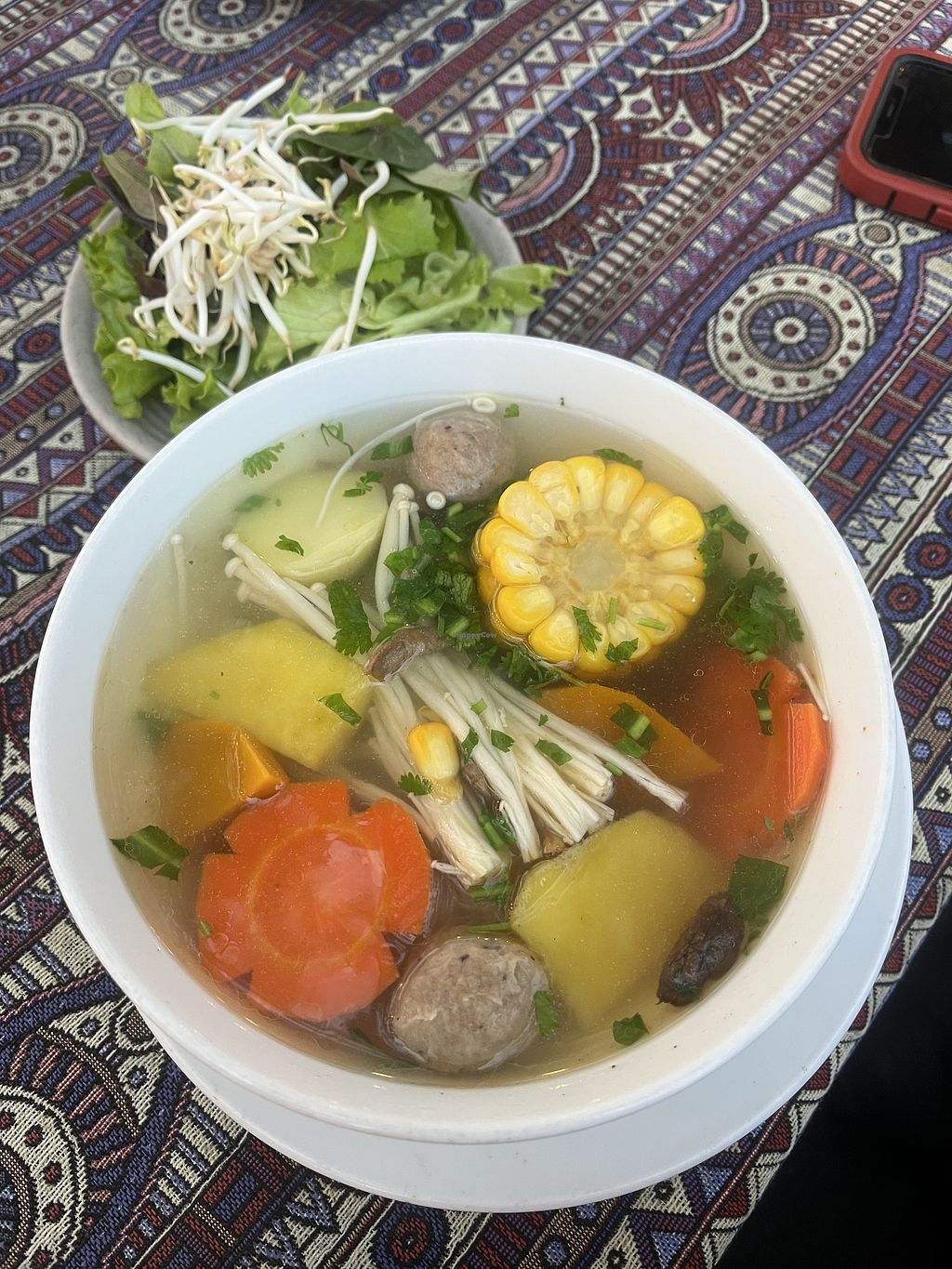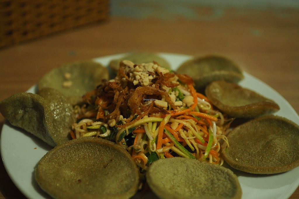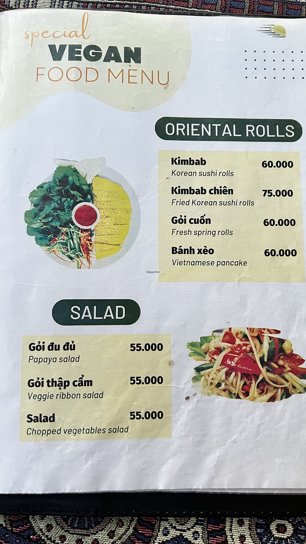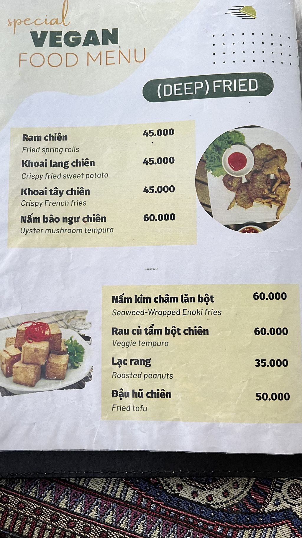 This is actually the second restaurant in Vietnam we’ve been to where they have vegan in the name and it’s actually a vegetarian restaurant. We’ve learnt this is because there is actually no literal translation to vegan and google translate is incorrect so it seems it’s getting used interchangeably with vegetarian. The translated word for vegan is often “chay” (Vietnamese) and “jay/jey” (Thai) this word refers those practicing vegetarian for religious reasons. Those who are chay/jay actually vary in their criteria for what they can eat eg. some aren’t year round chay/jay, some exclude onion and garlic, some eat eggs and some have milk.