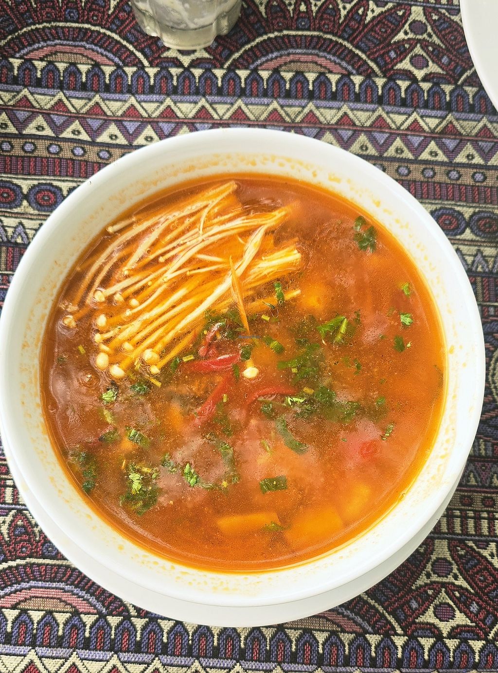 Pros: braised aubergine, veggie tempura, spicy soup