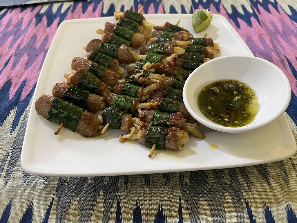 Pork with lemongrass, 3 thin slices and one lettuce leaf