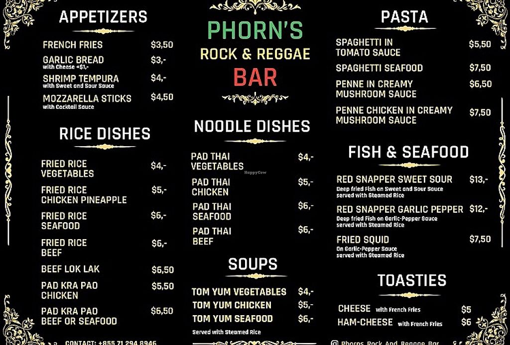 Serves meat, vegan options available. Bar and restaurant offering vegetarian meals that can be made vegan by omitting egg and fish sauce. Vegan options include tofu pad thai, red curry with tofu, fries, tofu fried rice, spaghetti pomodoro, and fried vegetables. Open Mon-Sun 11:00am-12:00am.