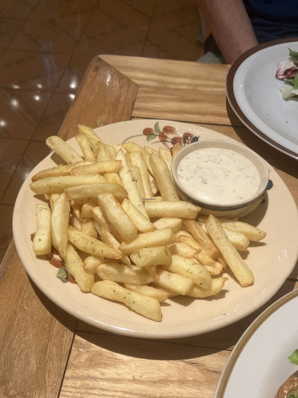 Everything was excellent. Great Tofu Cesar wrap. Fries were crispy with perfect seasoning. Served with one of the best mustard sauces ever