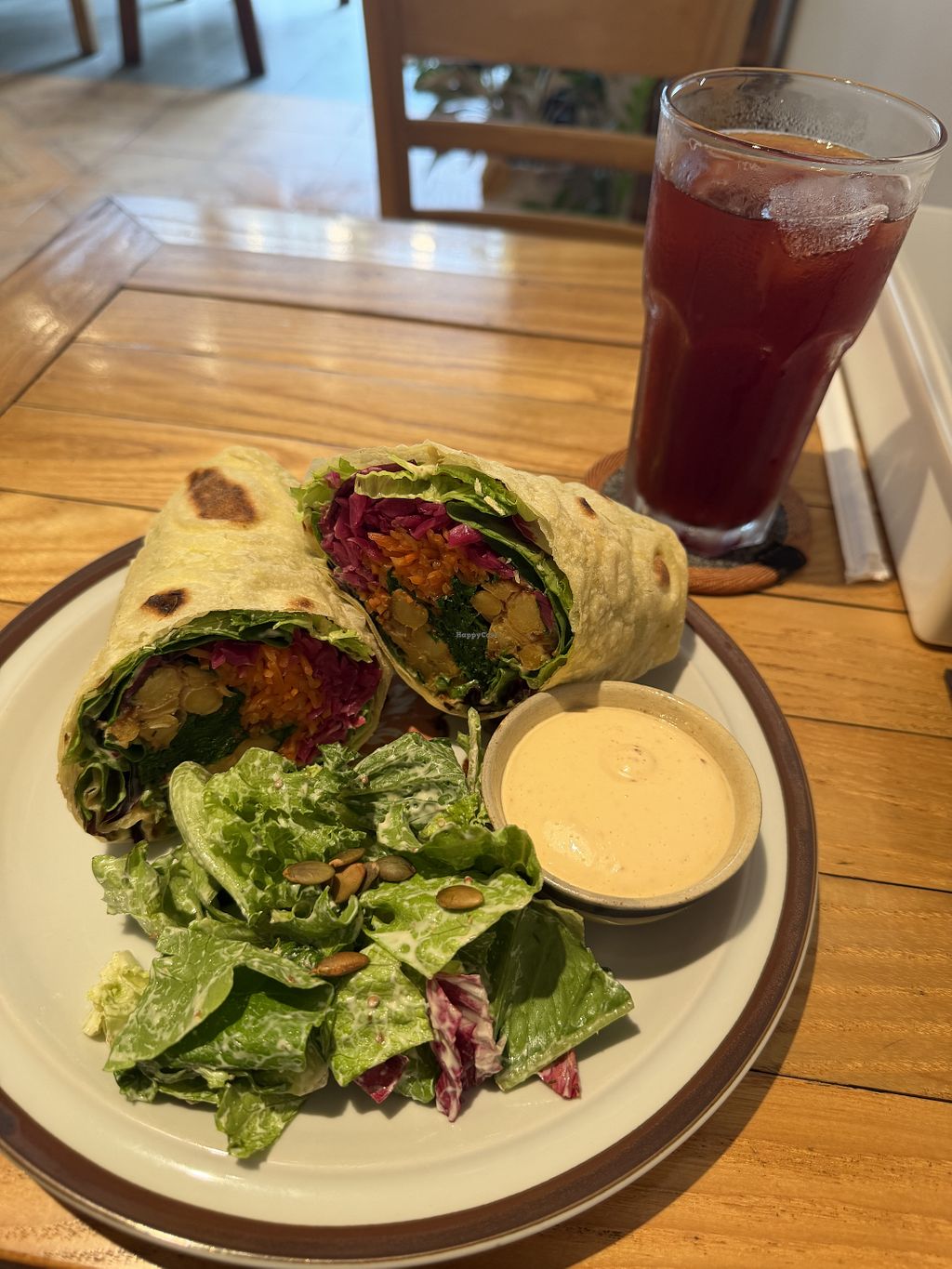 I came here for a late breakfast ab bd was not disappointed. I has the Tempeh Rainbow burrito, and a Hibiscus lemonade, and it was really good.