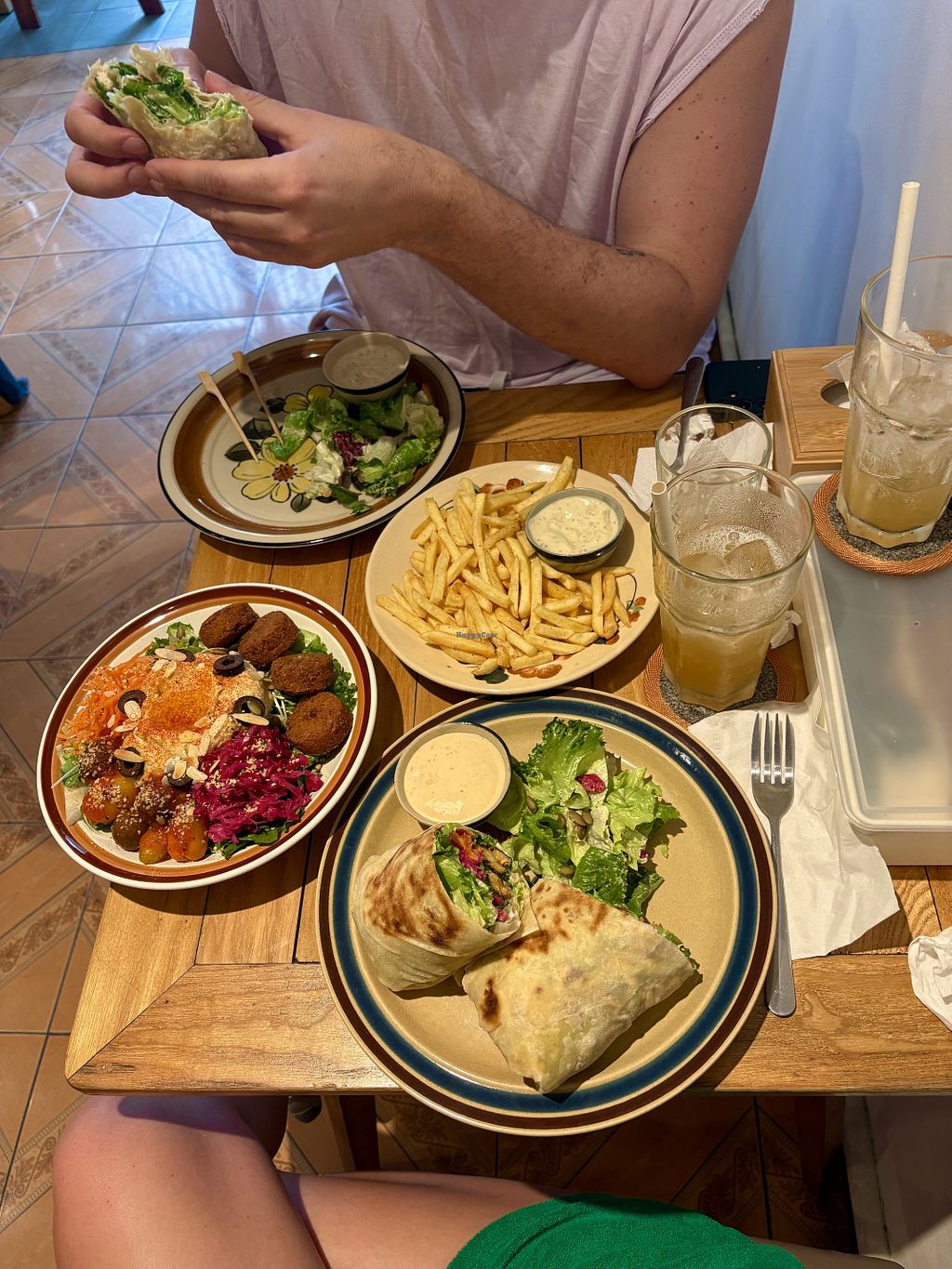 Had the Caesar salad and rainbow tempeh wraps with fries. Both delicious. .