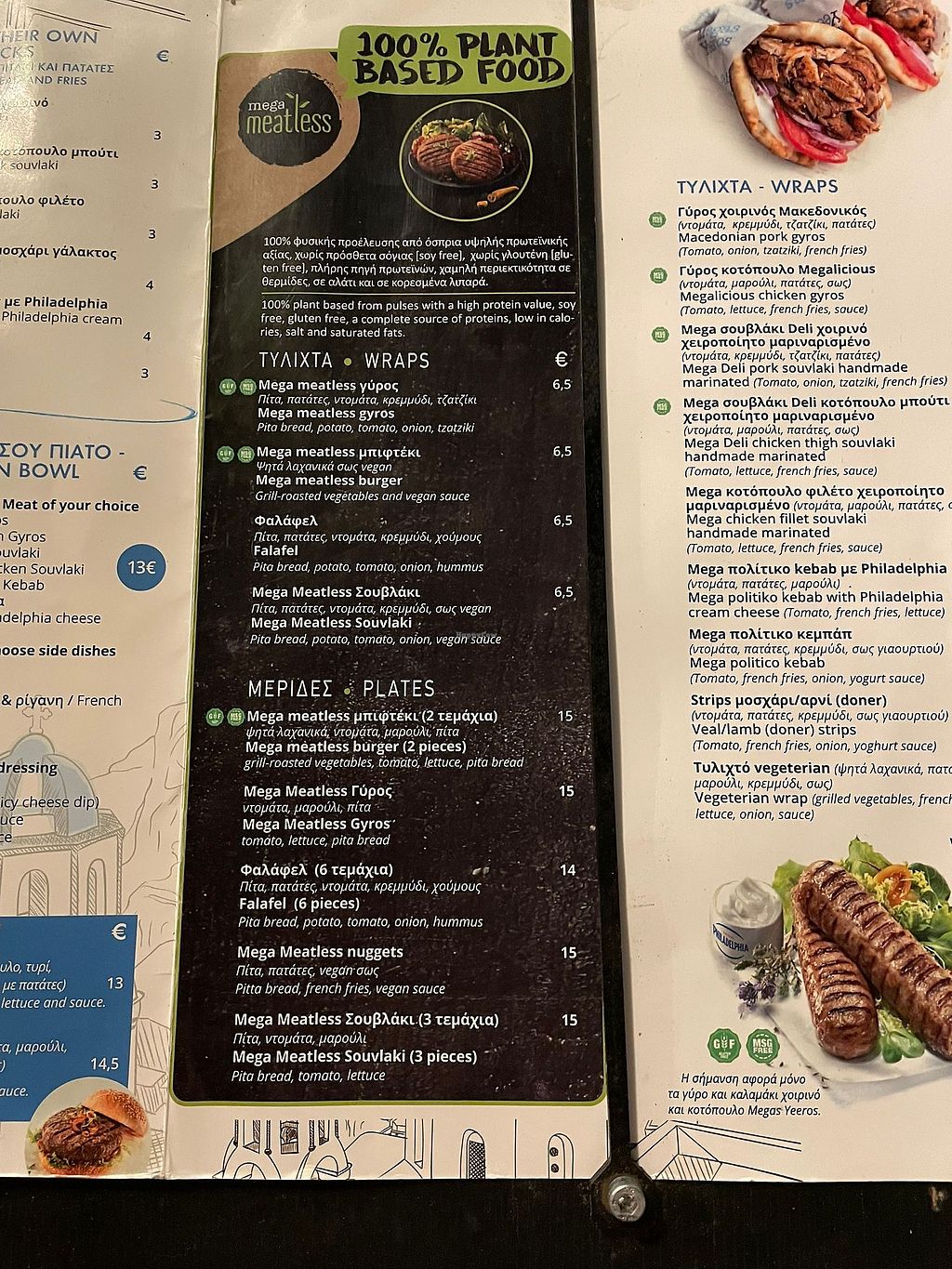 Mega meatless souvlaki wrap with vegan sauce