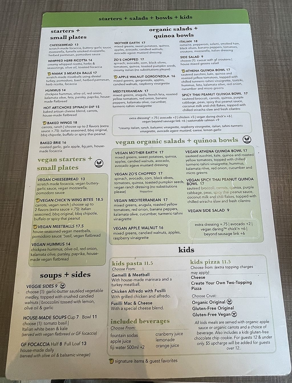 Vegan menu
