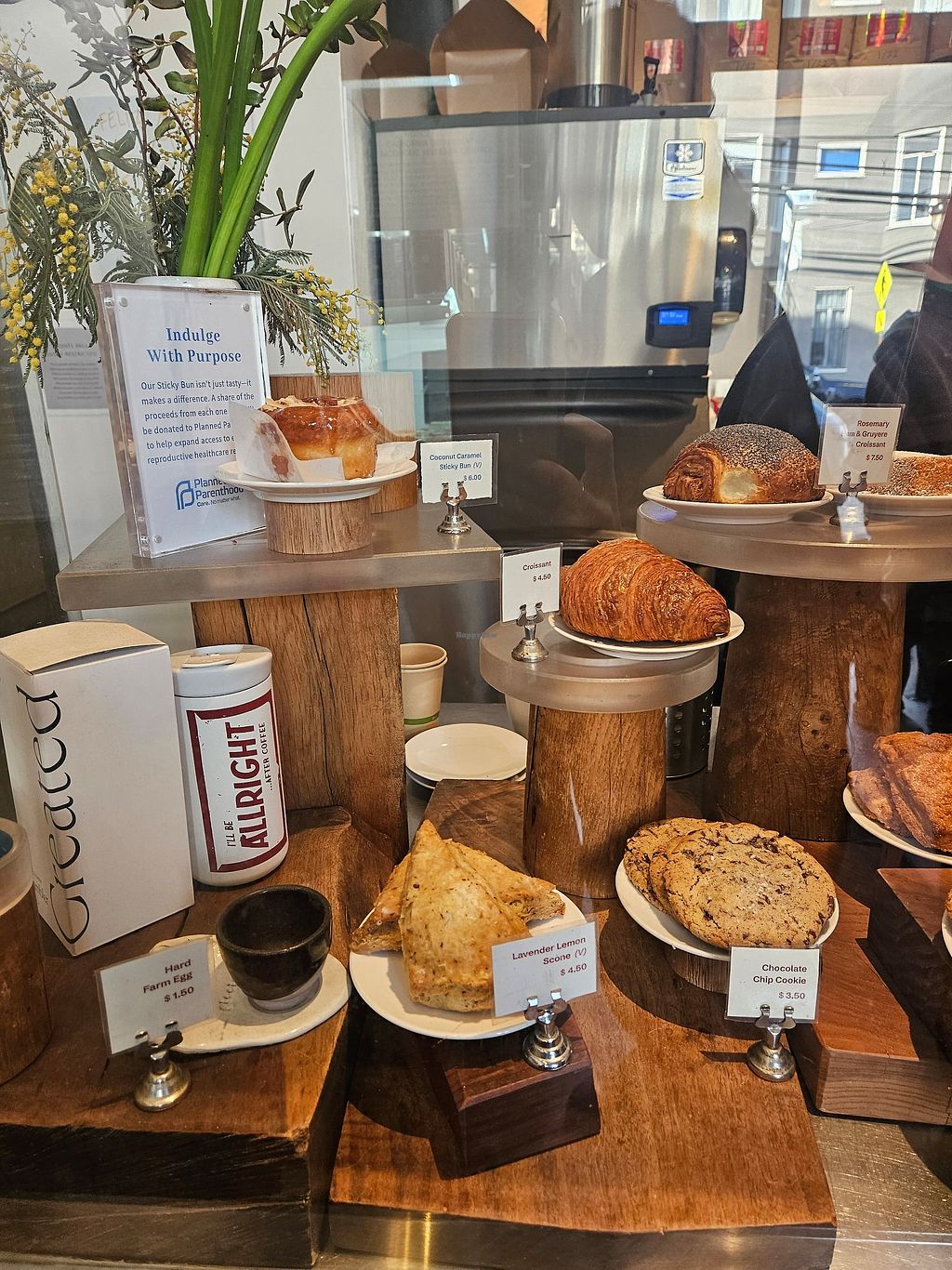 Tiny coffee bar attached to the Italian restaurant Piccino. Offers espresso and drip coffees with no upcharge for non-dairy milk options like almond and oat milk. Features a rotating selection of pastries, including vegan options such as lemon lavender scone and coconut sticky bun.
