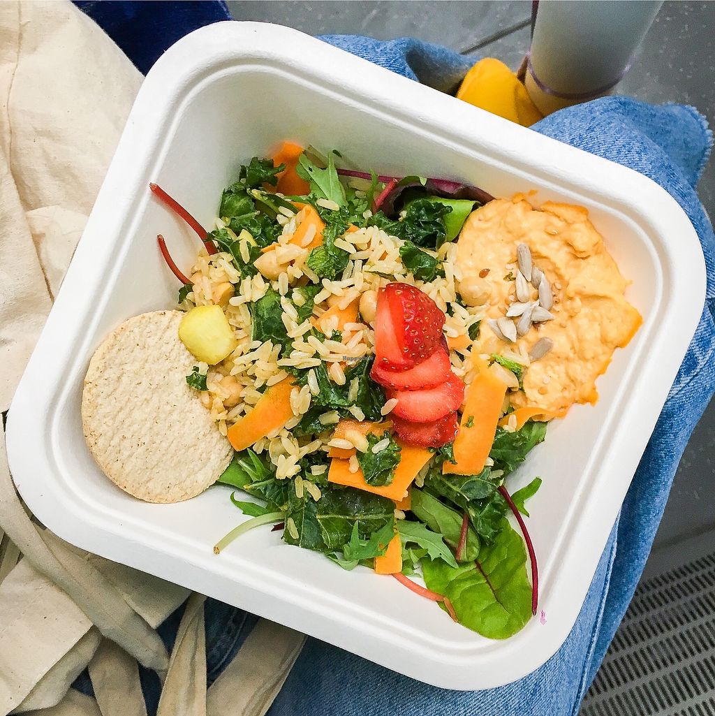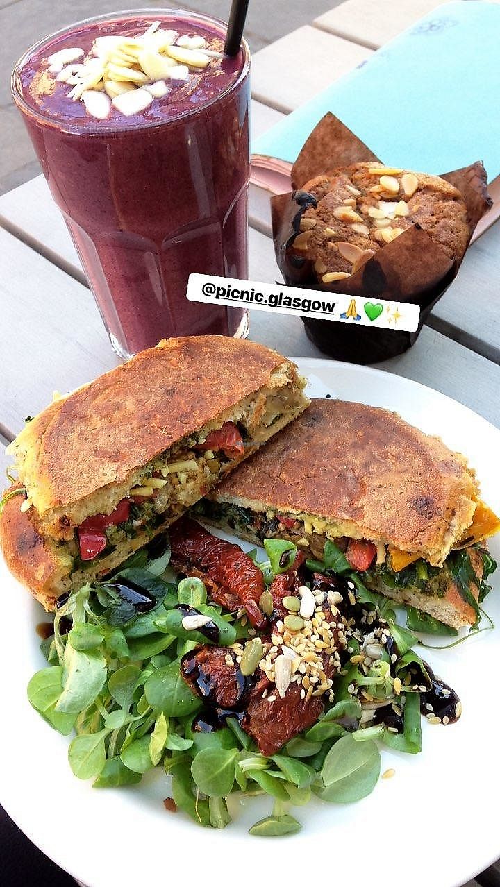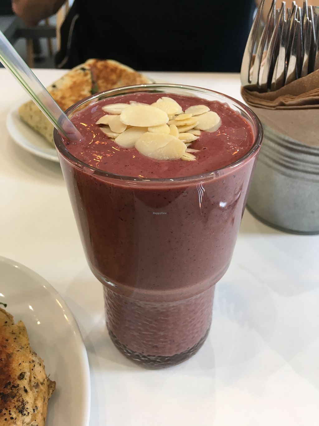 Quinoa & Hummus Wrap with Blueberry Kale Smoothie.