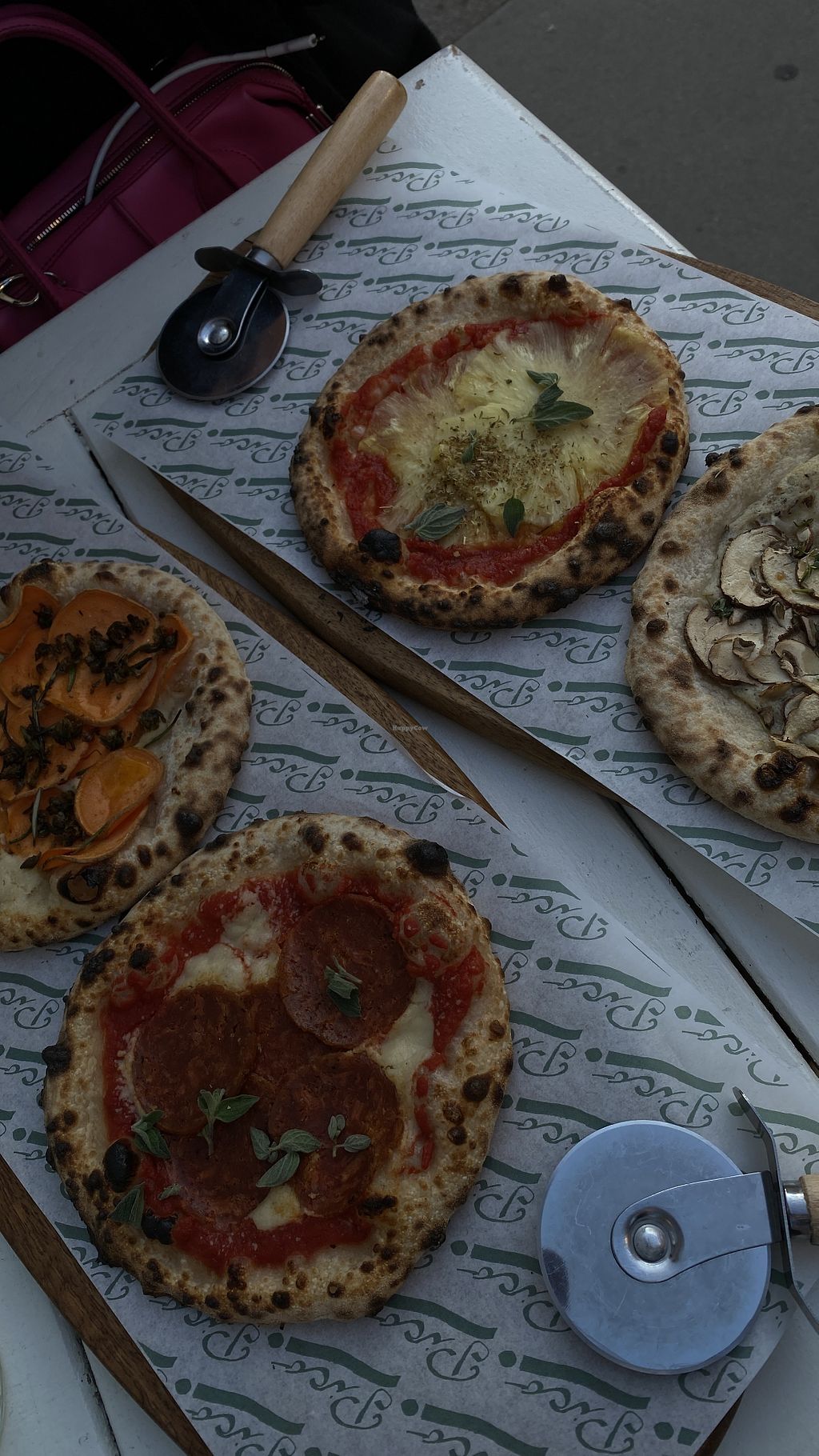 Loved the concept of getting three mini pizzas as I always struggle to choose just one. I tried the vegan salami, vegan mushroom and vegan Margherita. They were all so so delicious! Service was also very friendly. Would really recommend this place. 😊