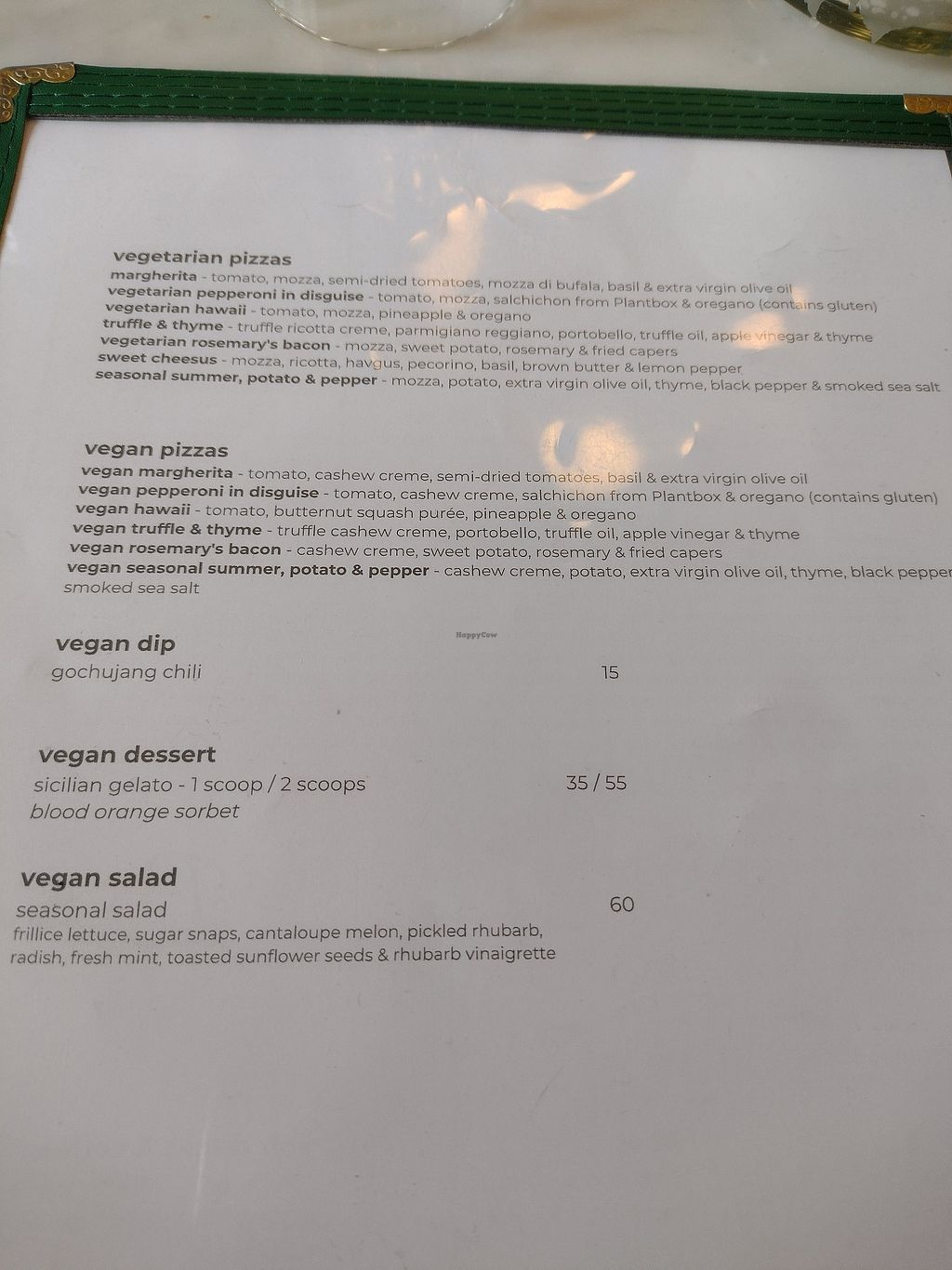 Had a trio of vegan pizzas. Very tasty and nice, albeit a bit too salty for my taste.