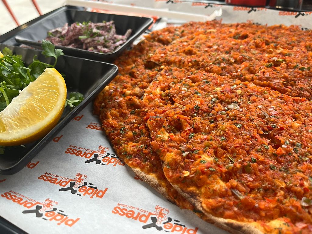 Lacto Pizza Mediterranean Delivery Take-out Middle Eastern Turkish Non-veg Serves meat, vegan options available. Turkish pide restaurant with vegan lahmacun and vegan pide on the menu. Open Mon-Sun 11:30am-10:30pm. More