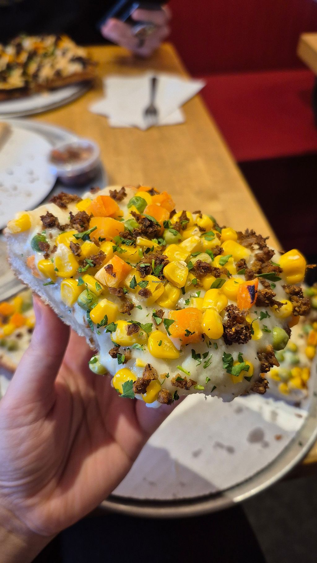 Def Shepherd: mashed potato base, FYH mozzarella, seasoned TVP, corn, …