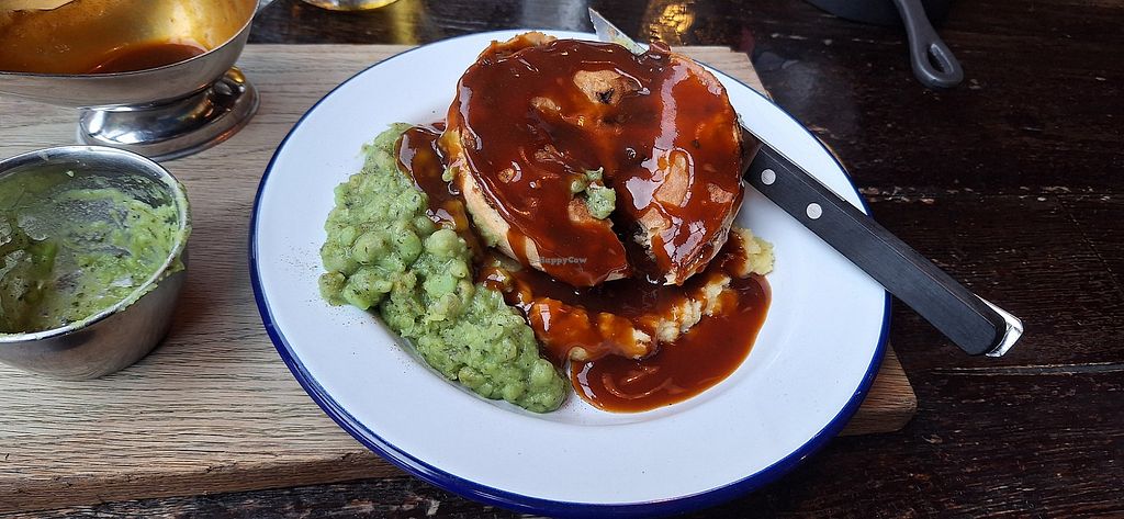 Had a vegan jackfruit steak pie. Lots of options to make your meal, choosing sides, condiments etc. several vegan pies. Also available in supermarkets.