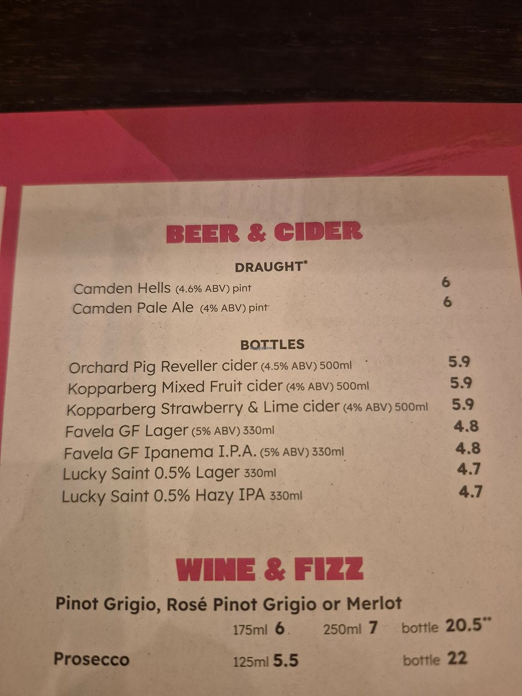 Had a mother earth, which was vegan pie, mash peas and gravy. Also a 0% hazy ipa. No hastle, arrived fast quality quite good. Service good, £38 for 2