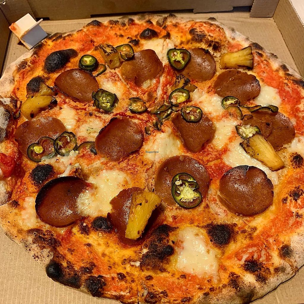 All-vegetarian menu and all dishes can be made vegan. Huge wine and beer list drinks, like vegan Irish coffee. ❤️ Dogs welcome. I loved their tuna and potato salad made vegan, ”ham” & pineapple apizza was really nice too, not to mention warm vegan churros