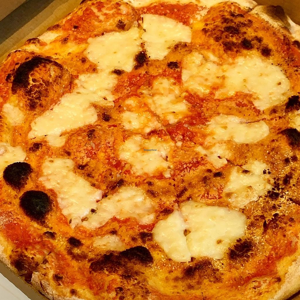 Vegetarian brewpub and pizza place offering vegetarian & vegan Apizza from New Haven, Connecticut. Apizza has a thin and crispy crust. Almost 50% of the menu is vegan. Both tomato and white vegan bases available. Vegan choices include pepperoni, margarita, potato, spinach and fungi - all topped with vegan 'moxarella'. Reported closed January 2022.