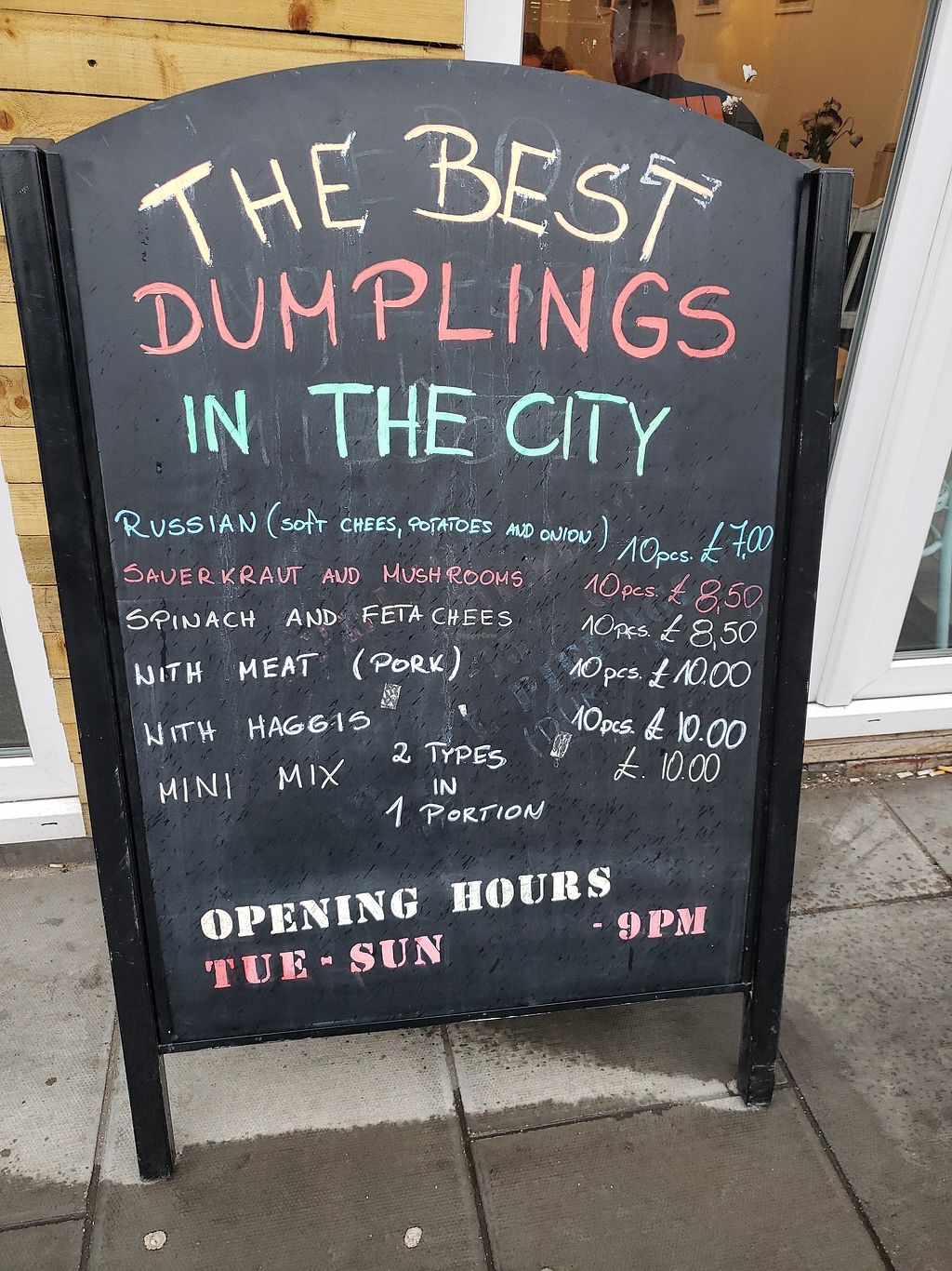 Authentic pierogies, both pan fried and steamed are delicious. Their Vegan Russian tofu tasted like cheesy potatoes and of course the vegan hagis is a must try while in Scotland! My partner and I opted for their 30 dumpling deal, one set of each above plus a blueberry. It was so good we wanted more afterwards! They make them after the order is put in so be prepared to be patient - it's worth it!
