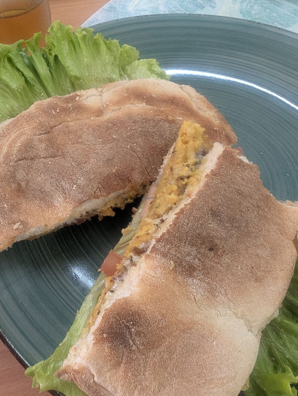 We had a vegan whole wheat empanada filled with black beans and seitan. It was not bad, bur not full of flavour. Husband had a vegetarian quiche which was okay.