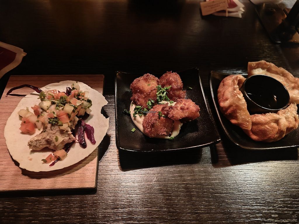 Read moreThe interior looks great and every table has a free box of popcorn on it but it was very empty. The woman serving us was friendly but they only had three (natively) vegan dishes except for fries with ketchup and a dessert. Those three (edamame, dumplings and a very tiny noodle box) were okay but it was quite expensive and very small, even for tapas. Veganising the burger would have left us with a patty, a piece of lettuce and ketchup and they didn’t want to change anything else.