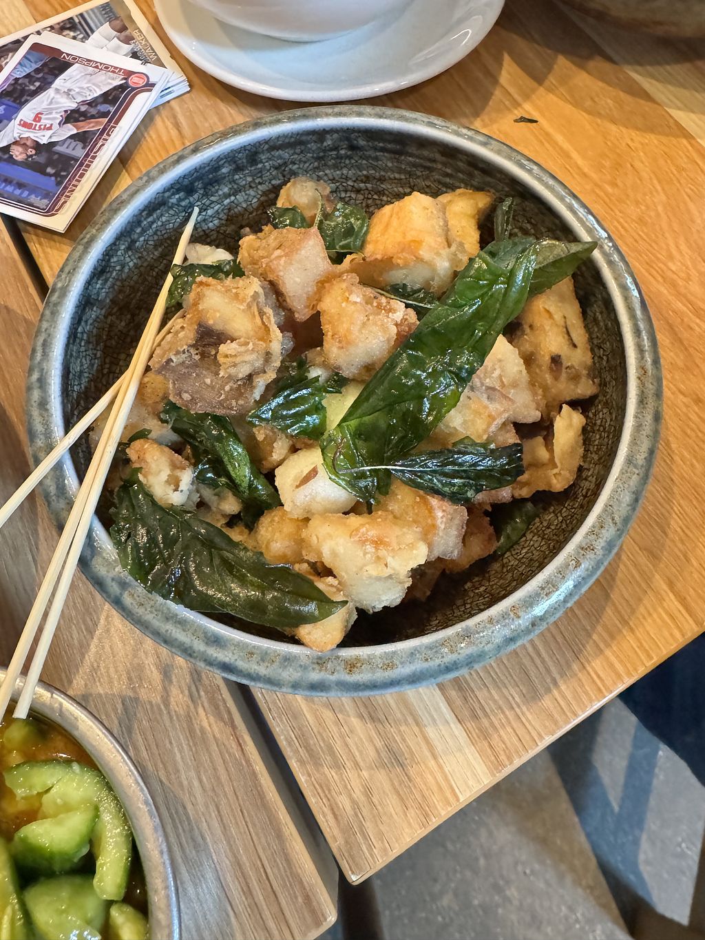 Fried mushroom with fried basil