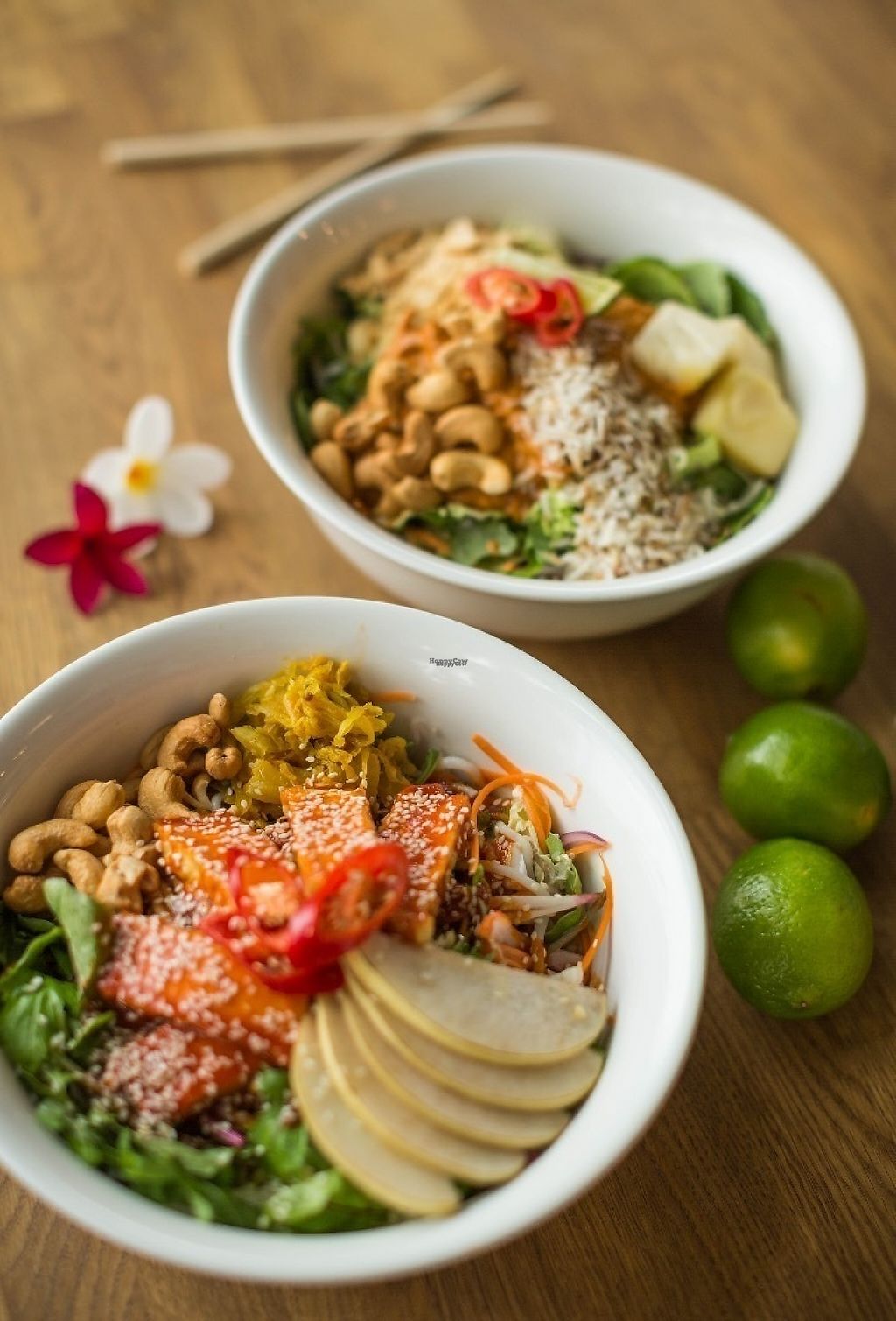 An all-vegan and all-gluten free restaurant serves Asian inspired salad noodle bowls and cold pressed Aussie fruit slushies (no added sugar or artificial flavors or colors). Ingredients consist of fresh rice noodles, artisan tofu, Asian greens, carrots, papaya, cucumber, herbs and red onion, plus a variety of sauces. Please note that ALL bowls contain tree nuts, peanuts, soy and sesame seeds. Can order using the app Hey You. Instagram - pineana-avalon. Reported closed Oct 2019.
