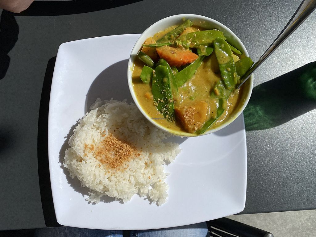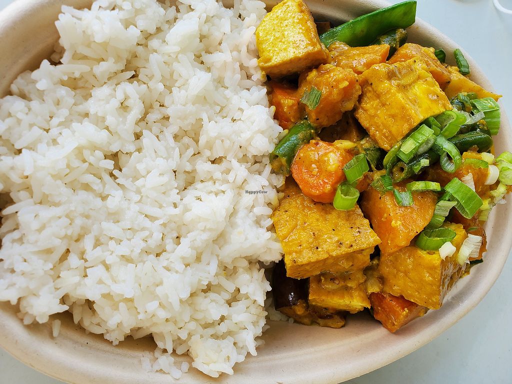 Curried vegetable tofu with rice is excellent! Delicious & hearty. Healthy. I really enjoyed this meal.