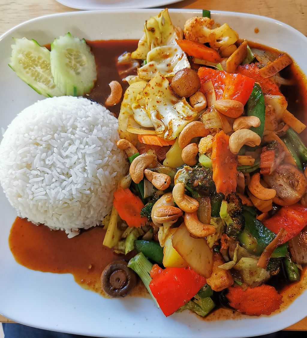 Fried vegetables with cashews. Perfectly balanced, steaming hot.