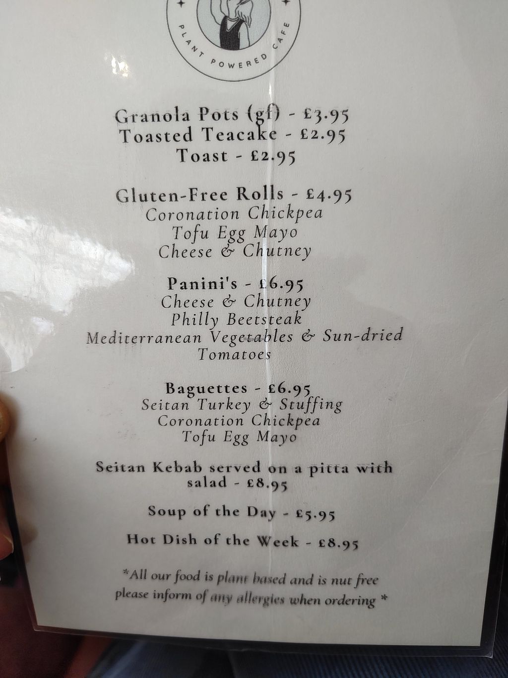 Stopped for lunch, glad to come across a fully vegan place in such a small town, definitely something we want to promote and encourage, enabling us full choice of the menu.