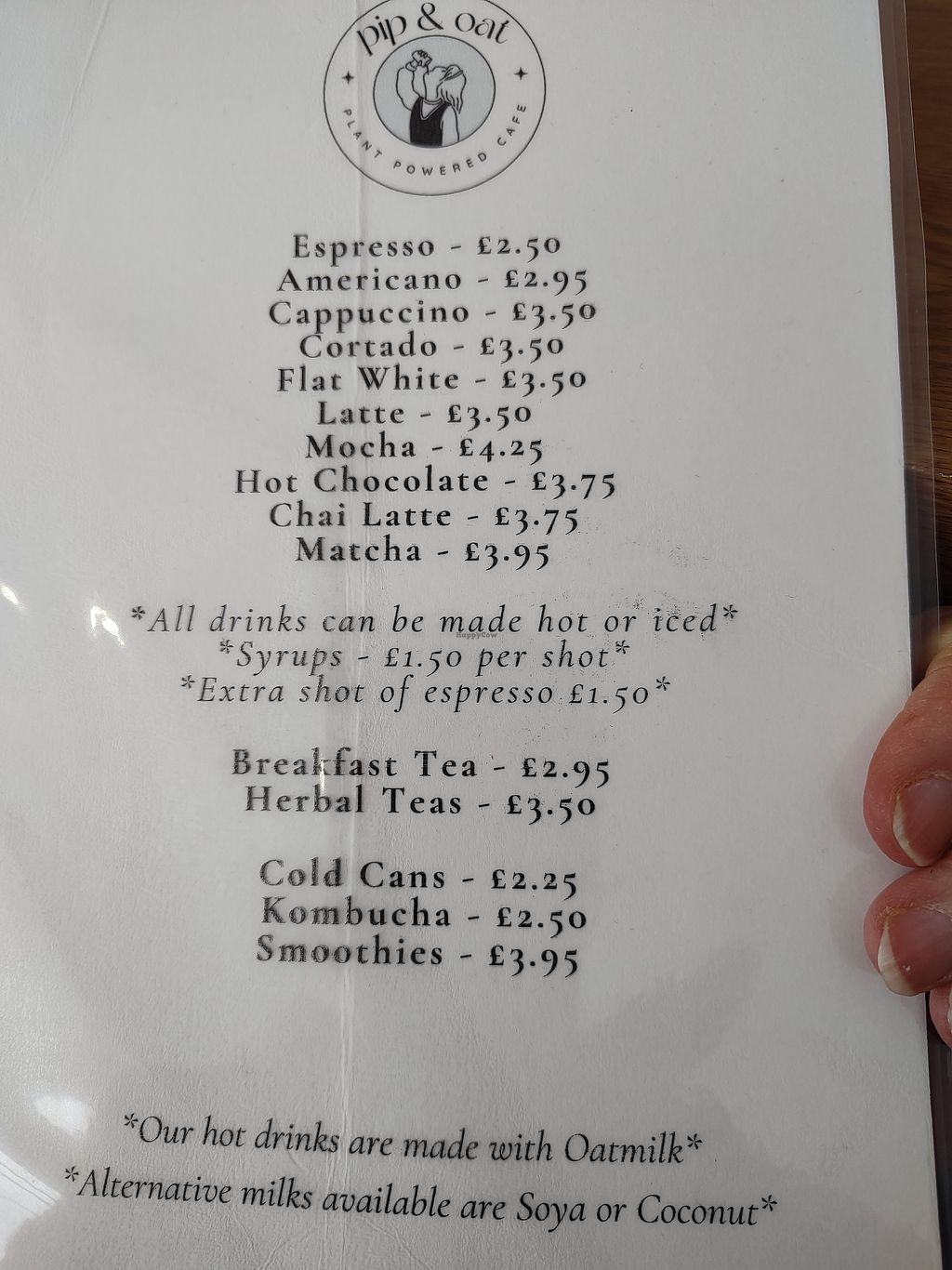 This café was a surprise discovery for my friend and me last summer, we've been telling everyone about this place for over a year. The staff are lovely, the food and drinks are delicious, and they've exceeded our hype this year. It's our favourite café, it excites me every time I go to have so many options, and their food is properly seasoned, not simply drowned in chilli powder or left bland. It's a paradise for vegans and people trying to get more veggie options. I can't recommend Pip and Oat enough.