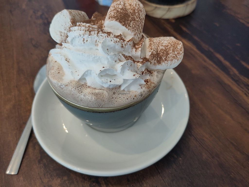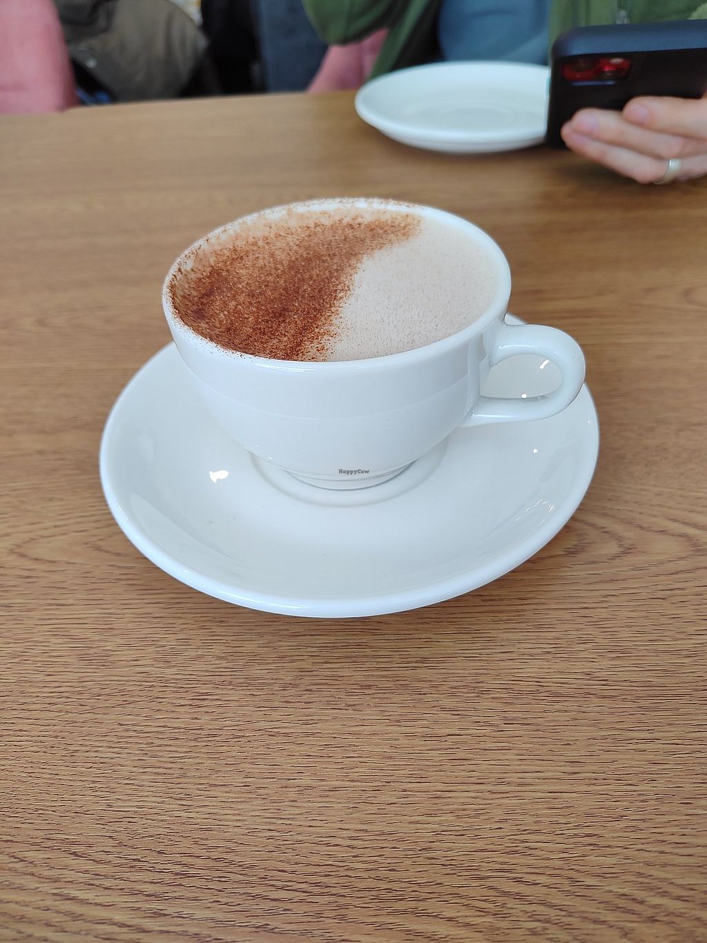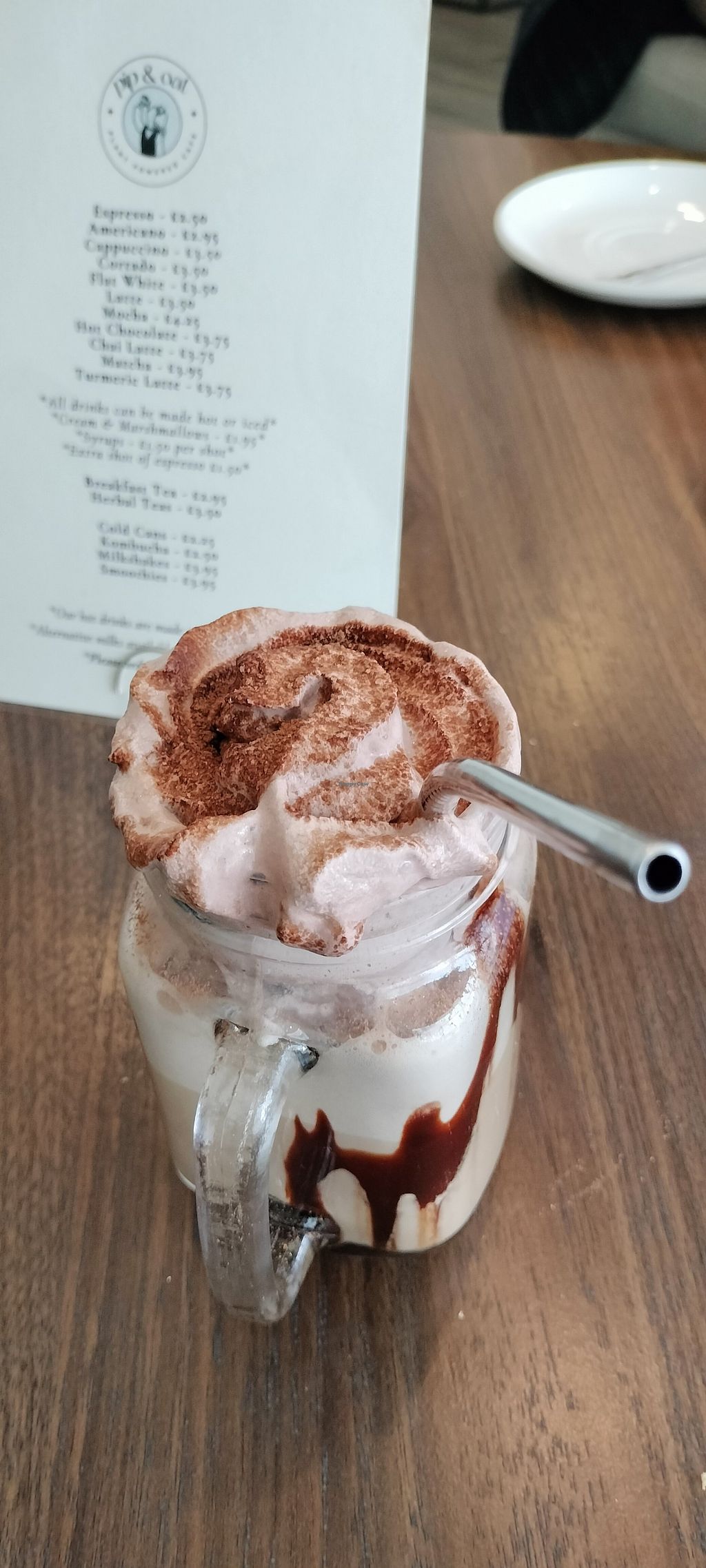 Really good coffee I had a latte with white chocolate syrup 👌 and my partner had a Mocha ( not usually my taste but actually enjoyed the sip I tried)