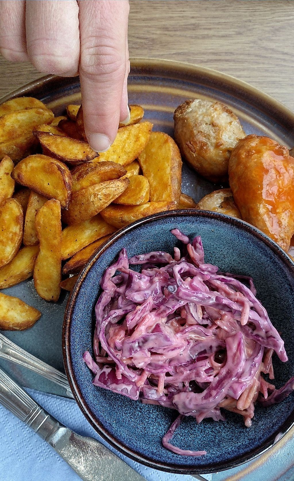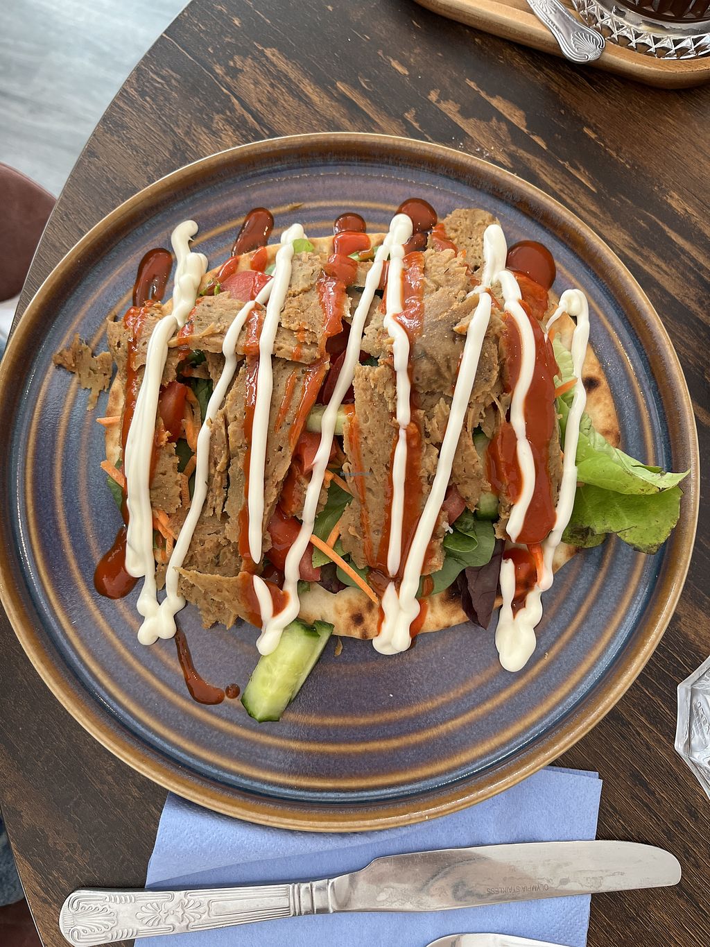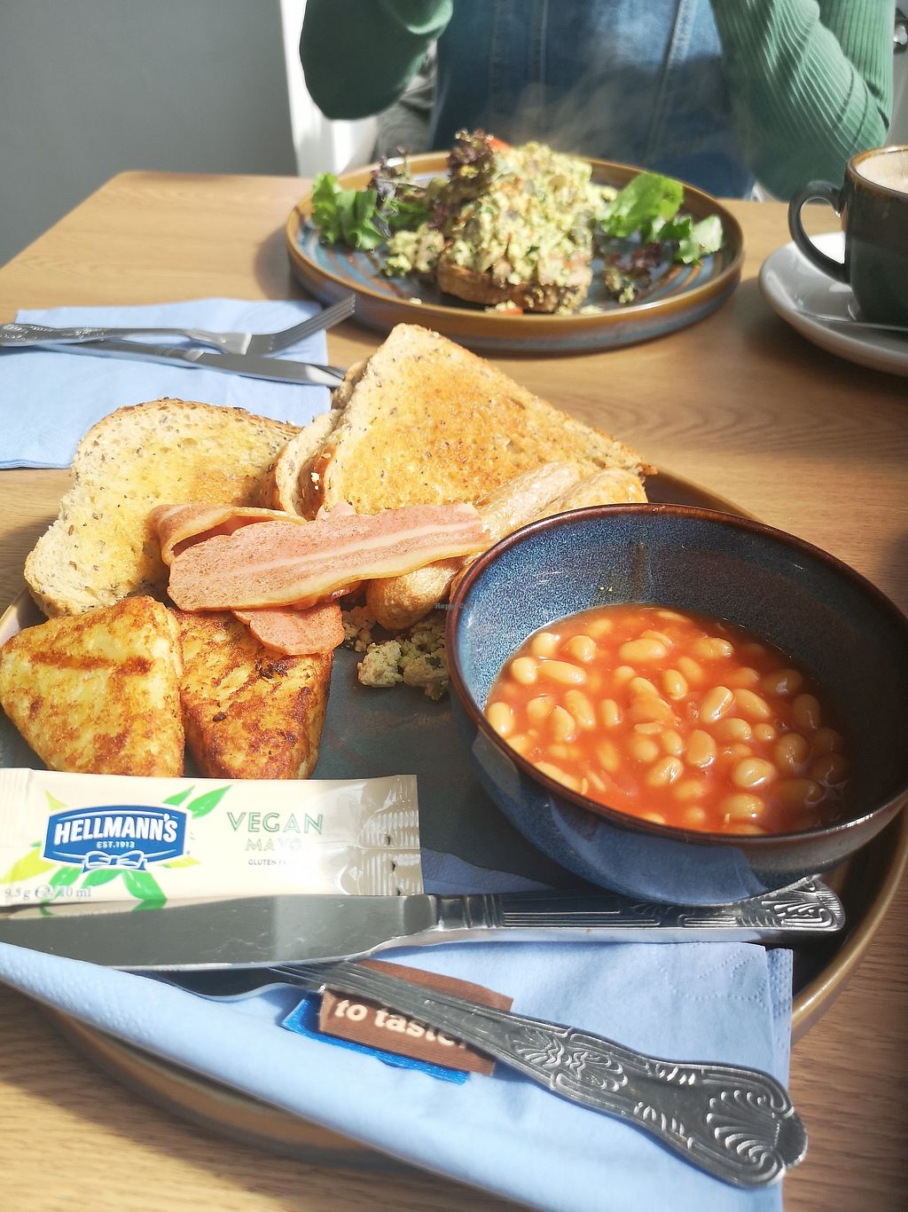 The place is very nice, very close to the coast. Everything is vegan. They have several dishes and cakes. The food is good, but the portions are a bit small (they barely served any baked beans). The cakes are good, although a bit dry.
