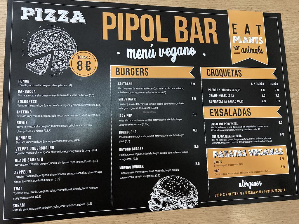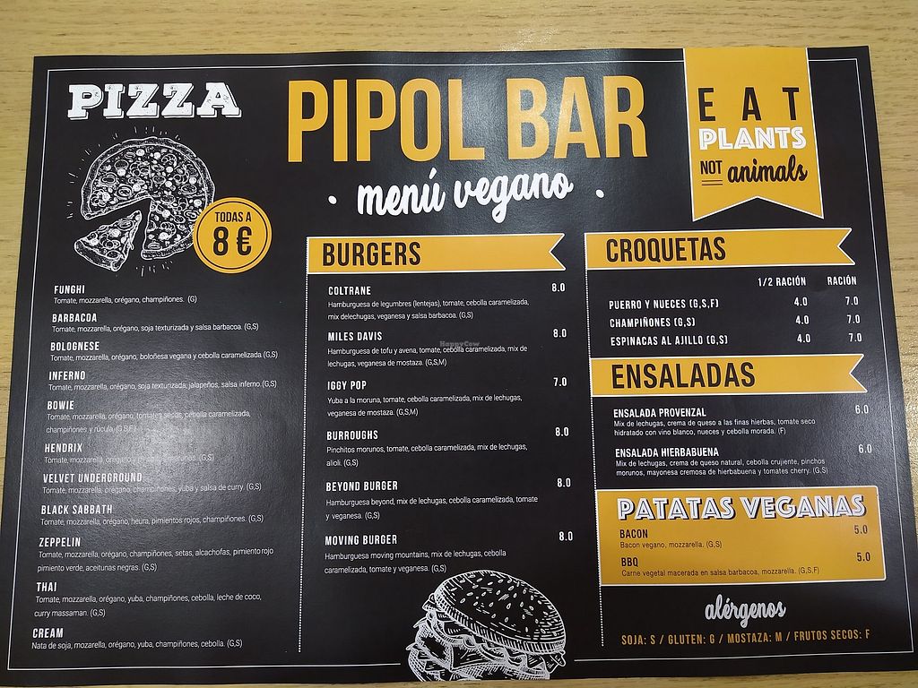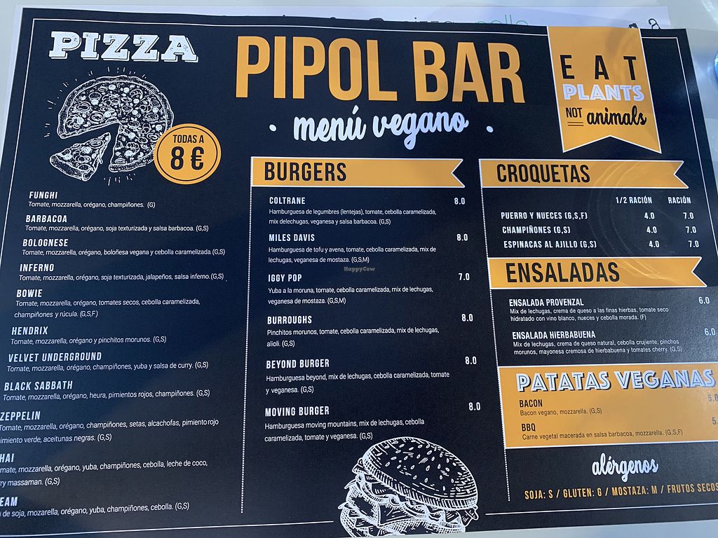 El bar dispone de una carta vegana donde destacan un buen número de platos, como una decena de pizzas, varias hamburguesas, croquetas caseras, ensaladas, y sartenadas de patatas fritas con quesos veganos y bacon. Todo a un precio excepcionalmente competente, donde puedes irte comido a reventar por poco dinero, y es que las raciones son generosas, especialmente las sartenadas, ideales para compartir. Un lugar totalmente recomendable.