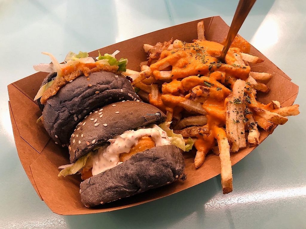Stopped in for the black bun sliders and cheese fries but those items are no longer available. Ordered the McRibless and hubby had burger, fries and nugs. Would stop in again when I’m craving junk food vegan for sure.