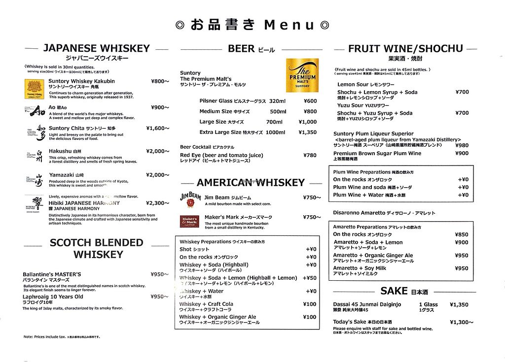 Drink menu 1
