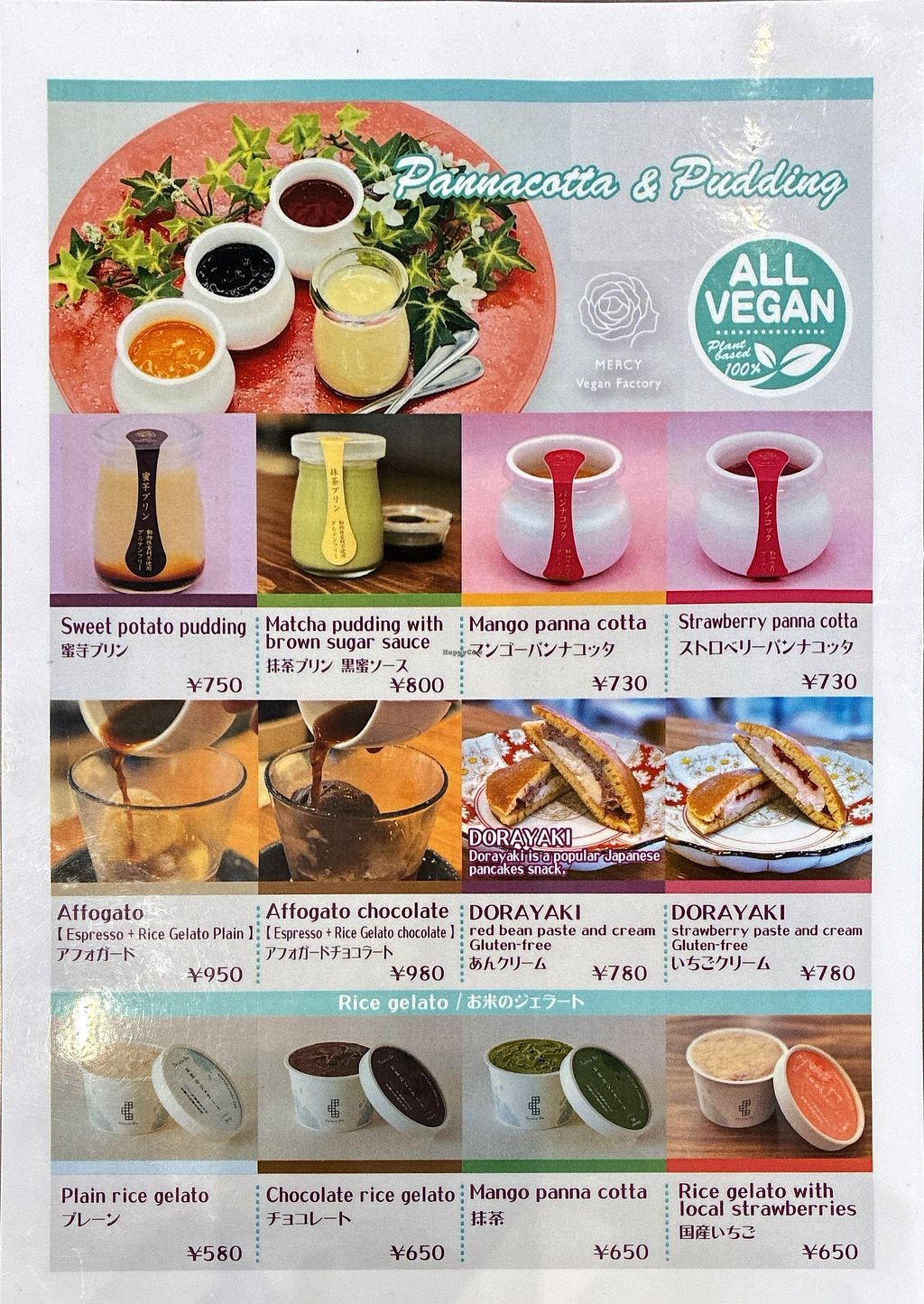 Dessert menu