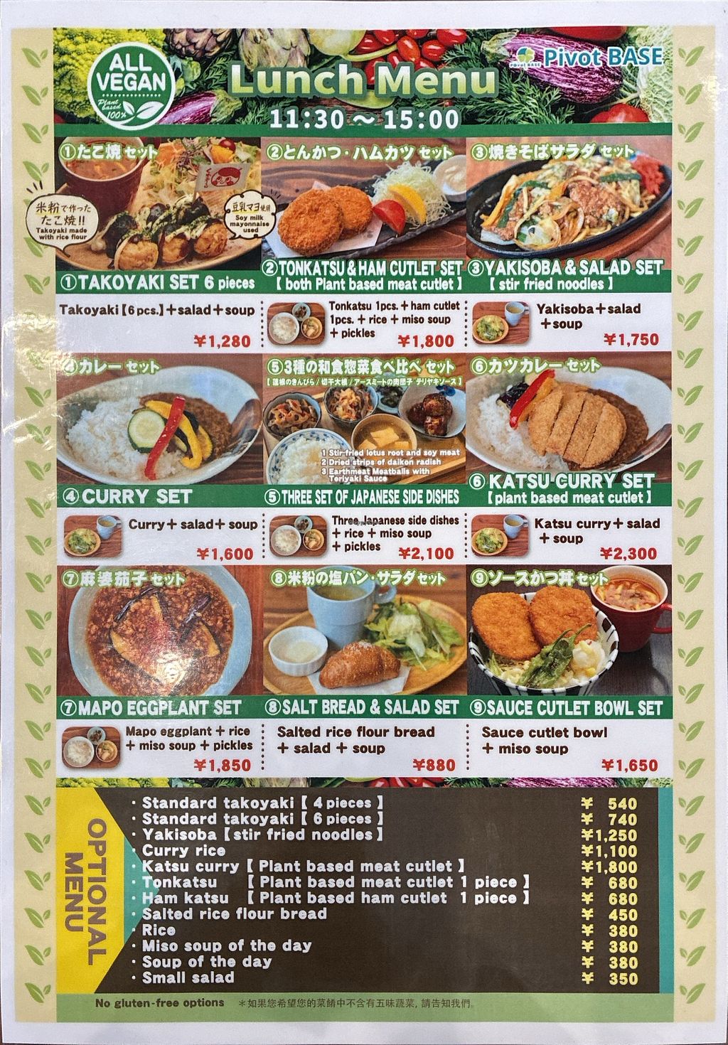 Lunch menu