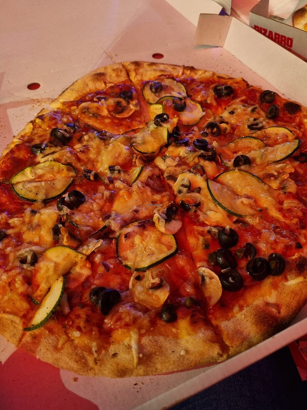 The vegan pizza is really good, like Napoli-good: great thin crust, sweet and savoury tomato sauce and with all the veggies they currently have. I ordered it without the vegan cheese - pizza really didn't need it ;-)