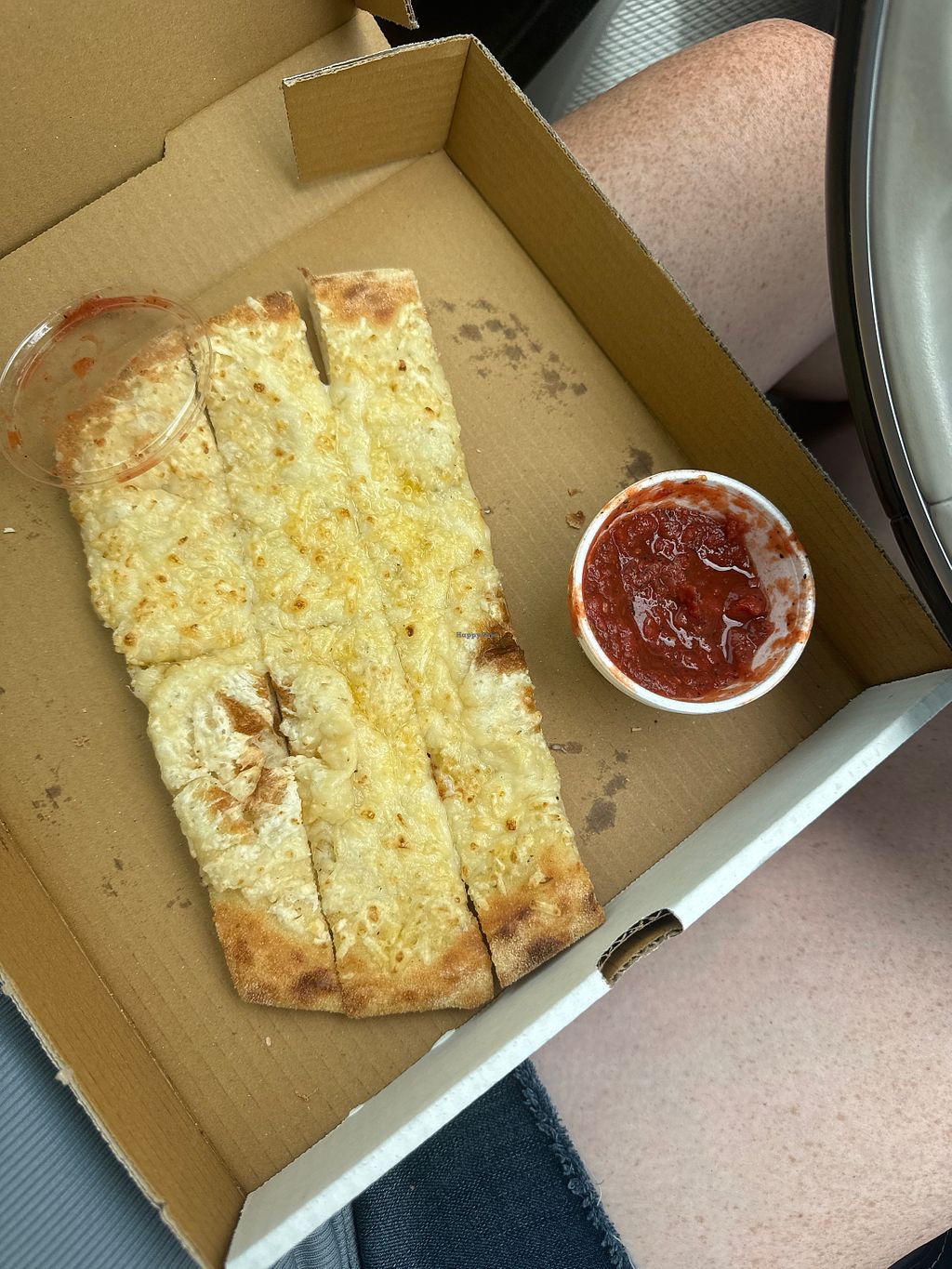 I ordered a calzone which I removed the cheese that the menu had and added vegan cheese and additional items inside as well as vegan cheesy bread! So good!