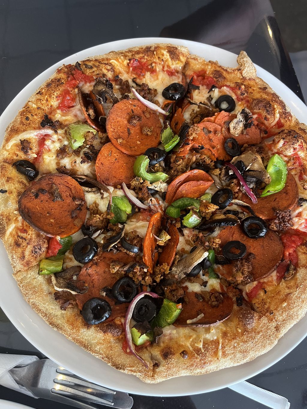 I’m convinced this is the most slept on pizza joint in the DFW area, vegan or otherwise. The bread is just exceptional. We spoke with the owner and he’s got this whole process for how he makes it. Such a cool guy that has so much pride in what he does. We had the vegan margherita, vegan supreme, and the vegan cheeze sticks. Everything was exceptional, and they even have vegan ranch! Happy cow would only let me give 4 stars, but this one is a clear 5! A must try for sure.