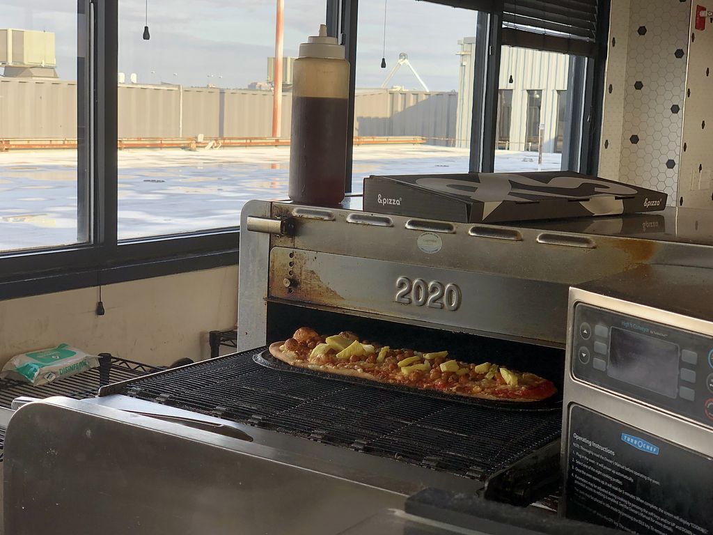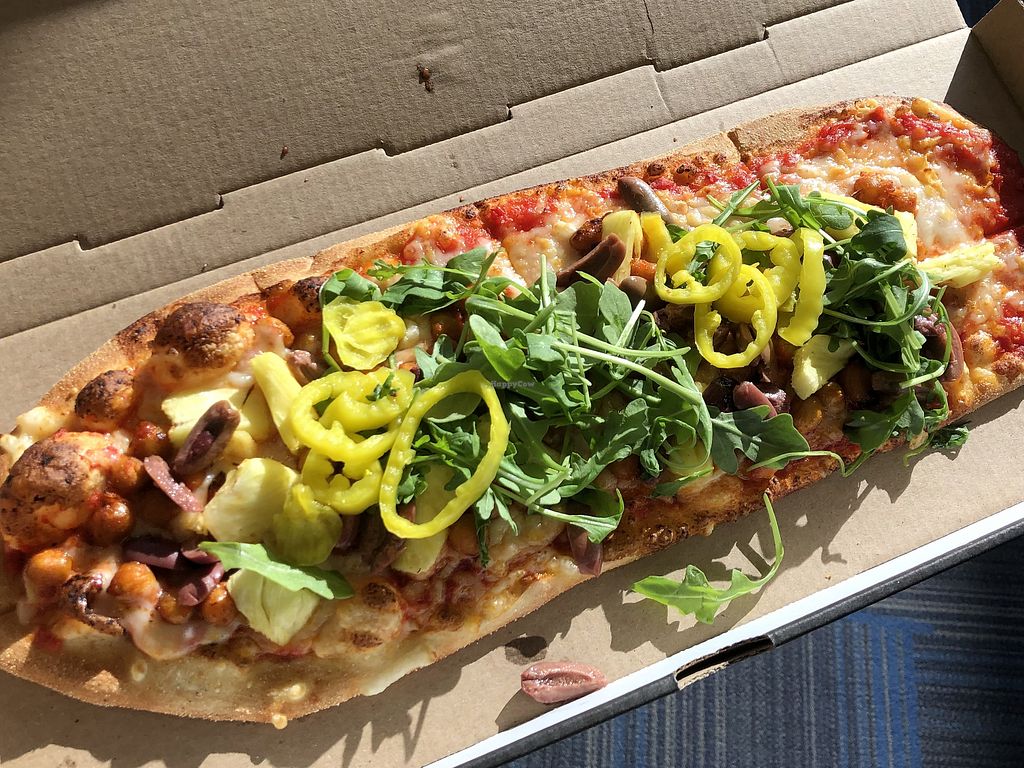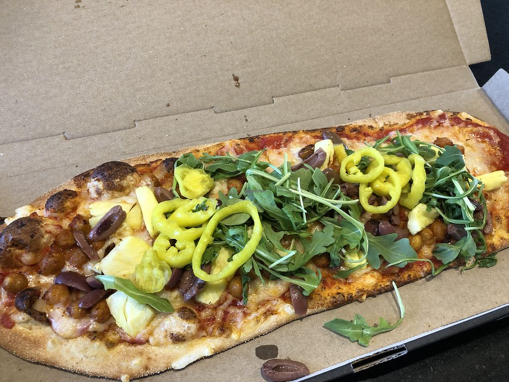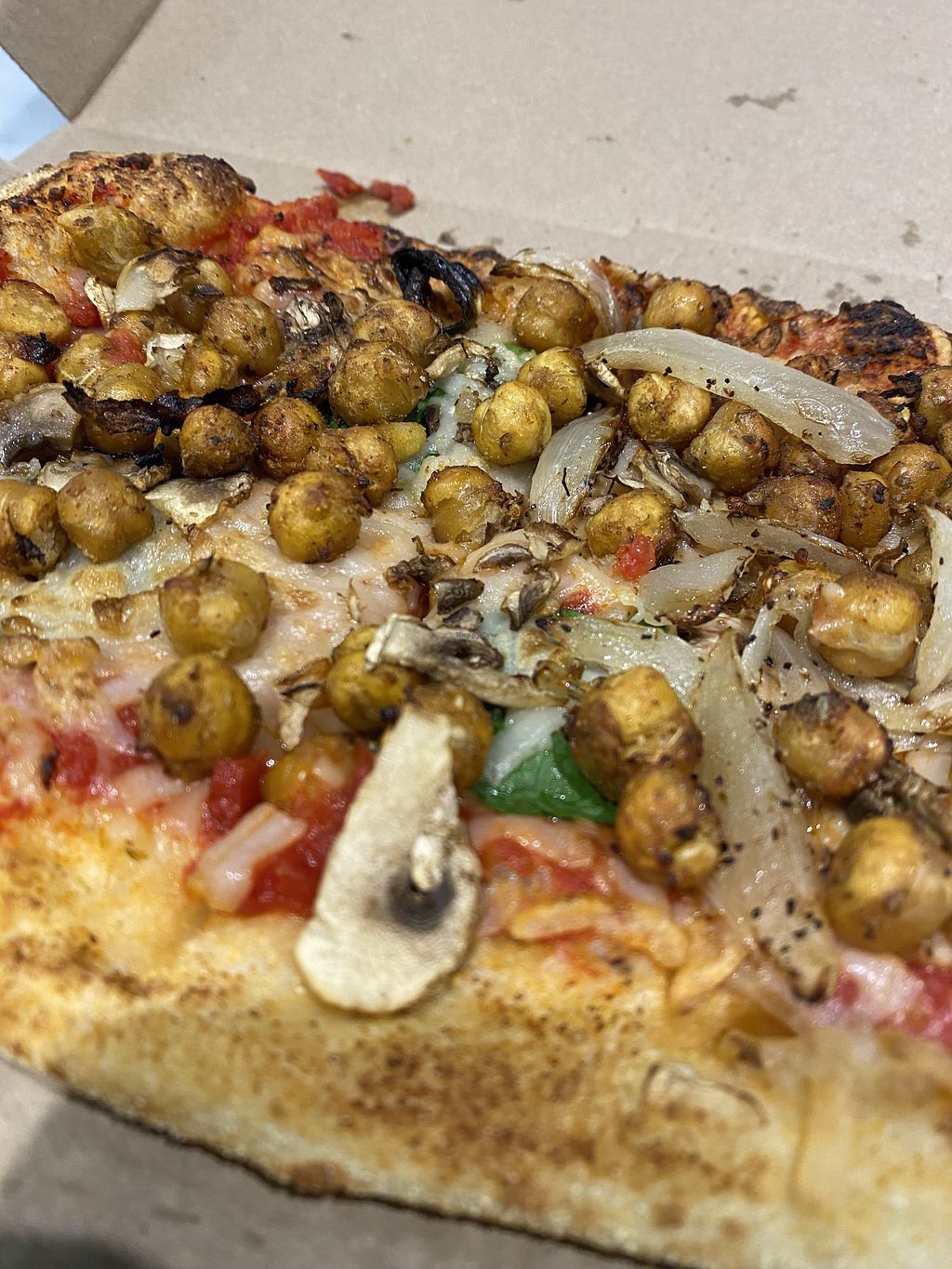 Vegan mozzarella, vegan sausage, mushroom, pickled onion. Soooo delici…