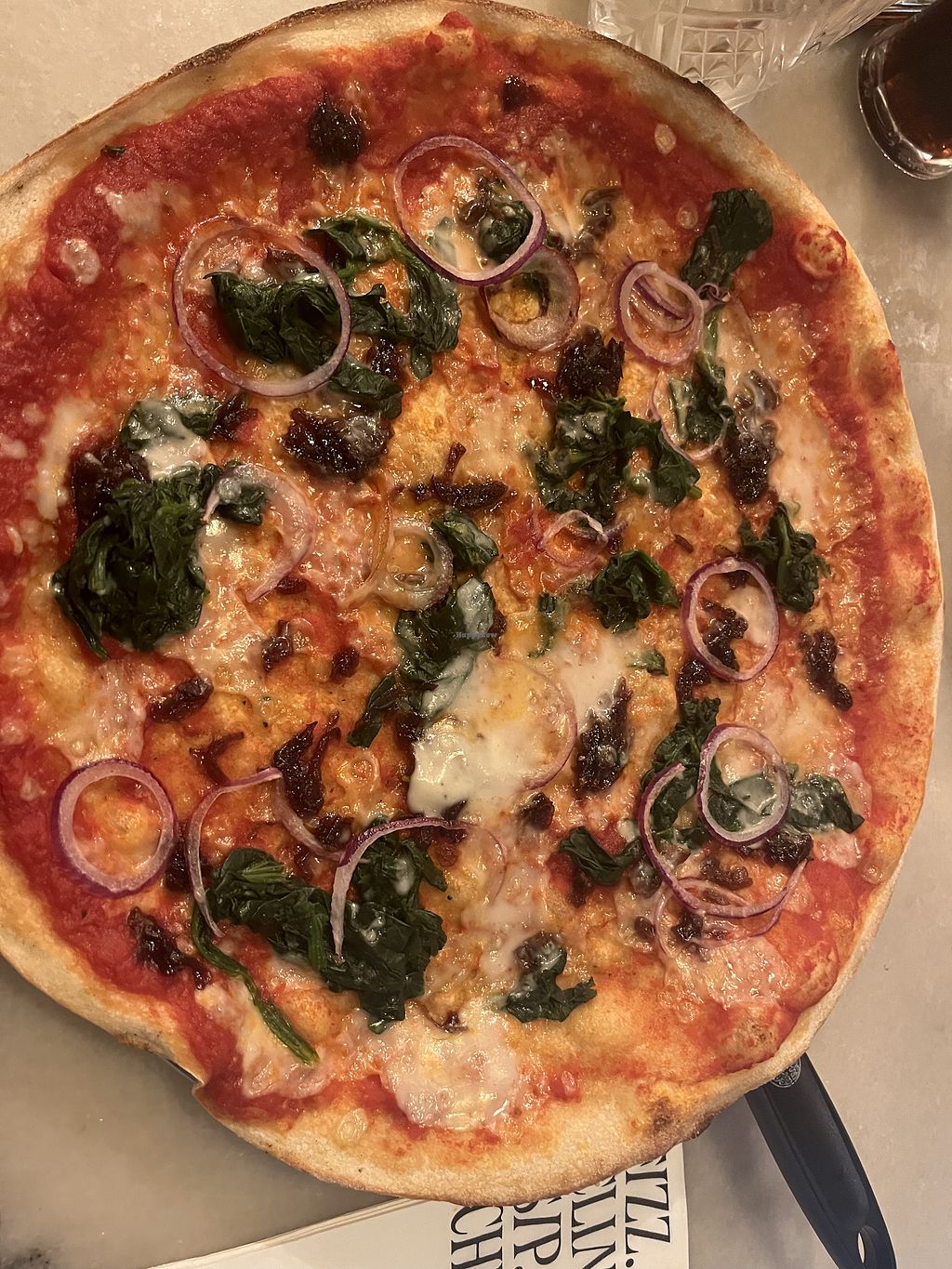 Pizza Express has an online vegan menu, which helps with all the harder bits like wine selection.
