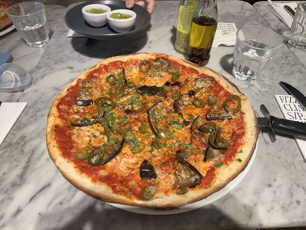 Serves meat, vegan options available. International pizza restaurant chain founded 1965 with its first branch in London and has since grown to operate outlets across the UK and overseas. Created a separate vegan menu in 2018 offering choices including: starters like marinated olives and vegan dough balls, multiple varieties of pizzas (uses vegan cheese & faux meats), an al forno penne pasta, alcoholic drinks like cider and beer, fruit sorbet and carrot cake for dessert. Soya milk is available for coffee and tea. Outside of the UK the options may vary so check with your server. Open Mon-Sun 11:30-22:30.