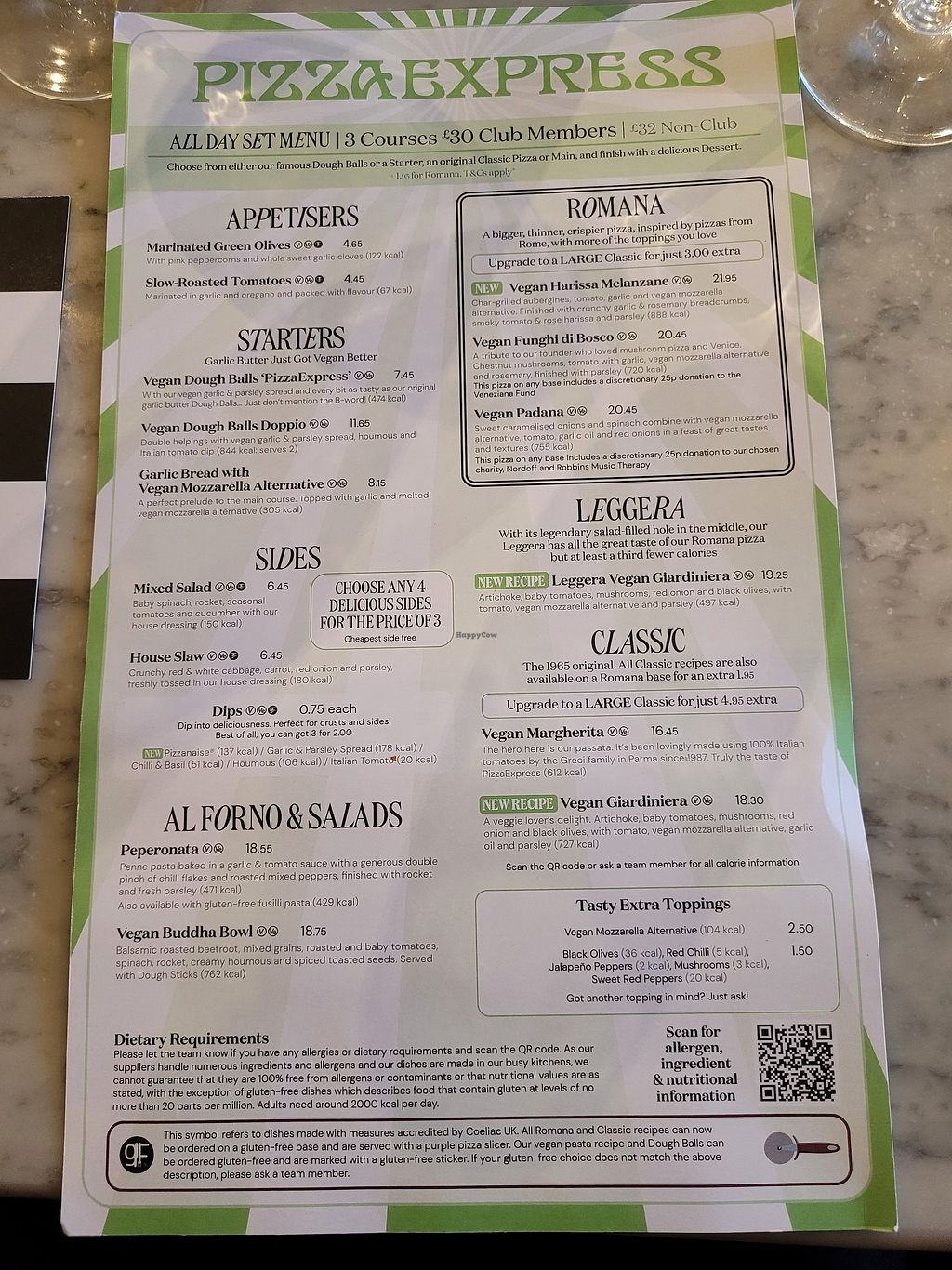 Vegan menu