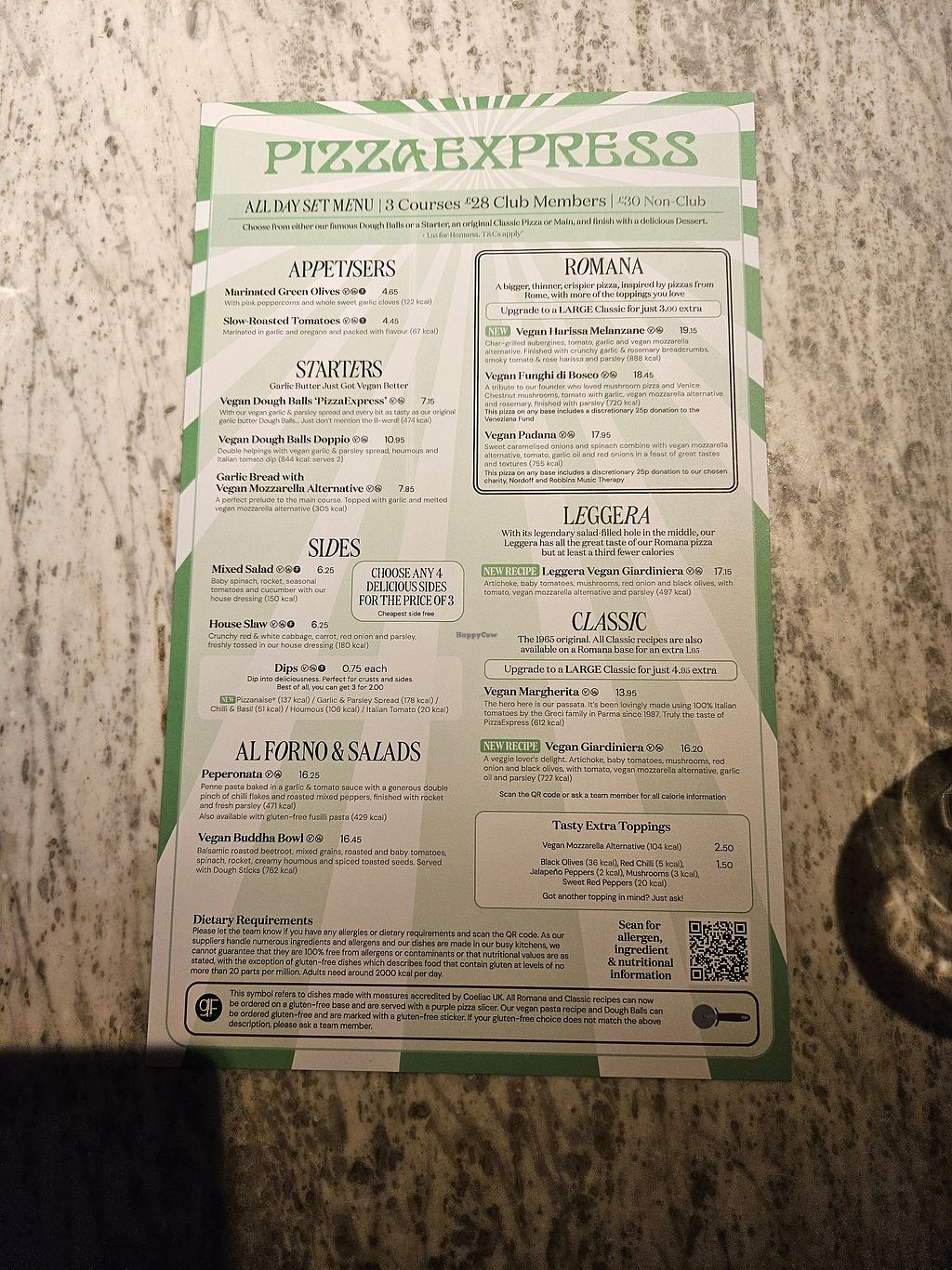 Wide range of vegan pizzas available, in the low calorie option too. We had the vegan mezze pizza which was delicious, it didn’t have any cheese on it but it didn’t need it. It was also clear which wines are vegan.