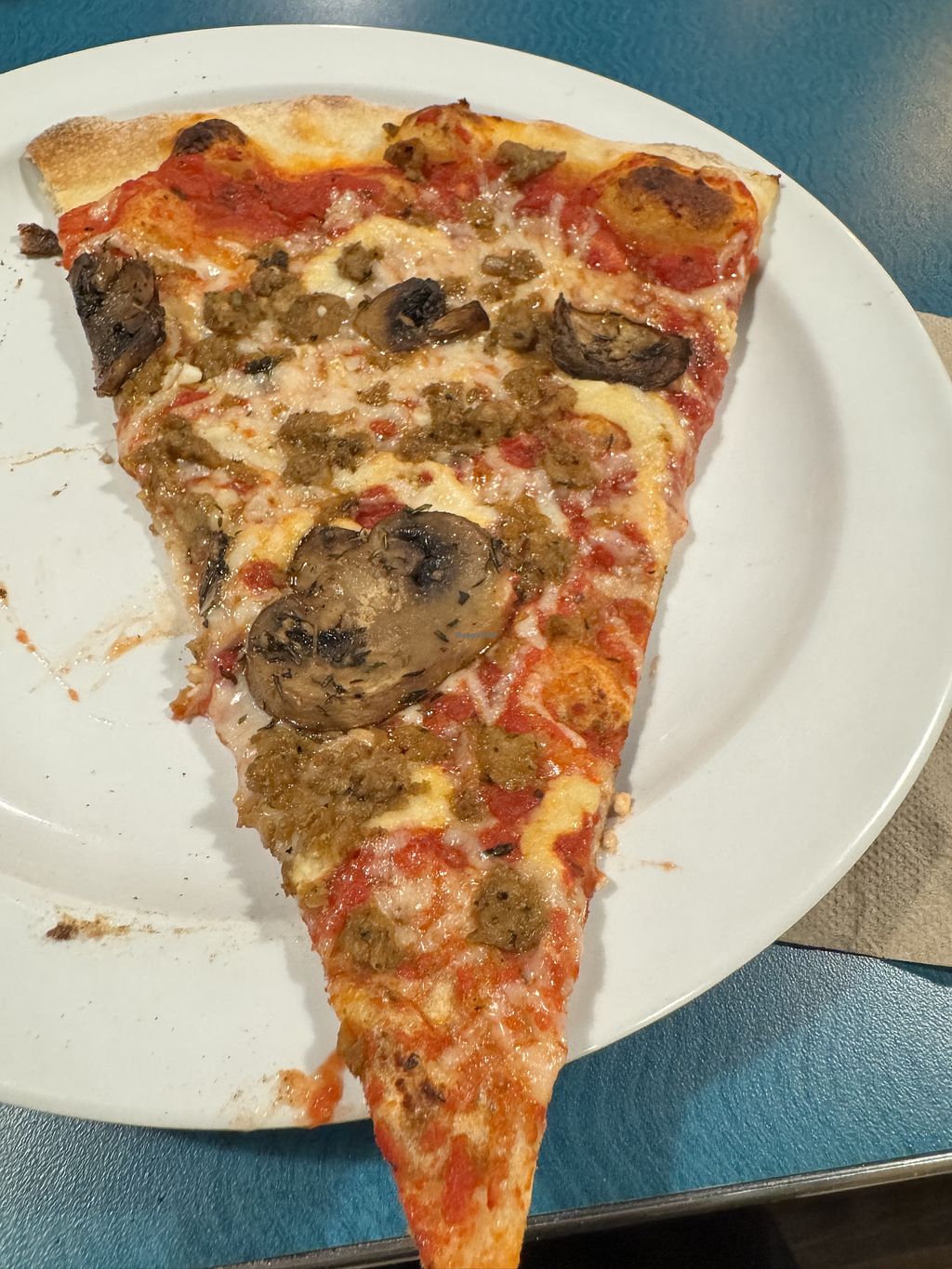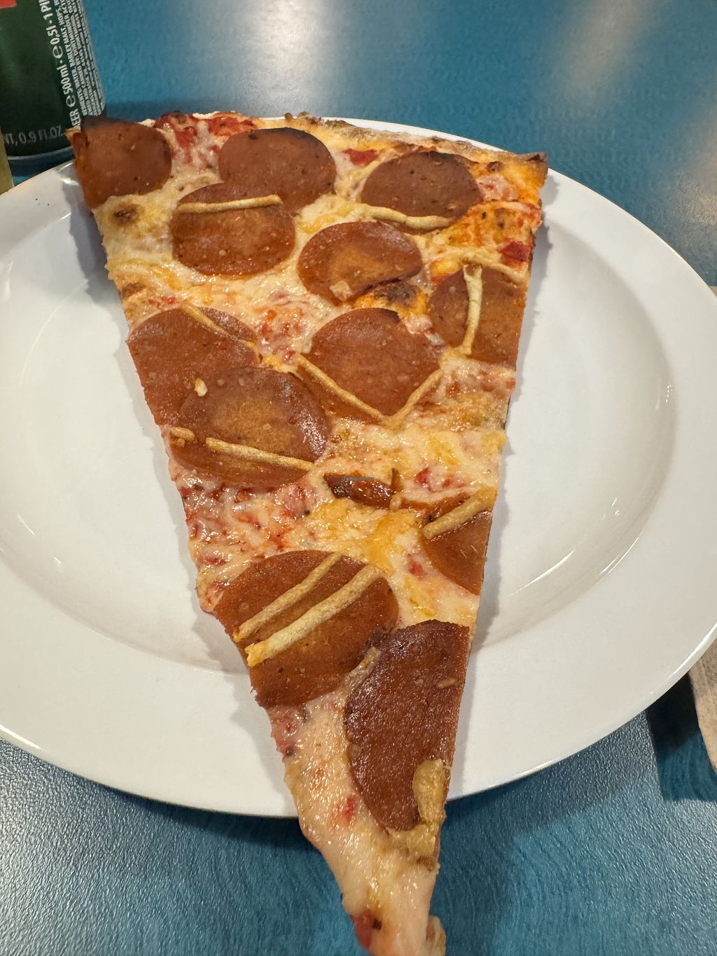 Vegan pepperoni by the slice! The wide angle on my camera makes them s…