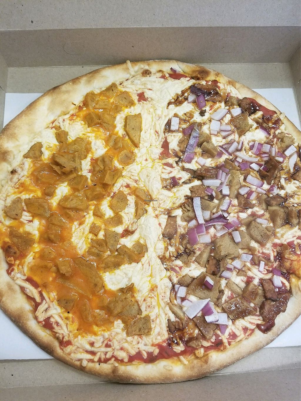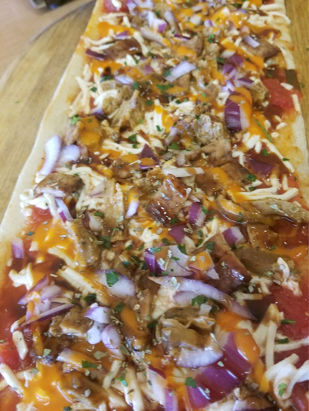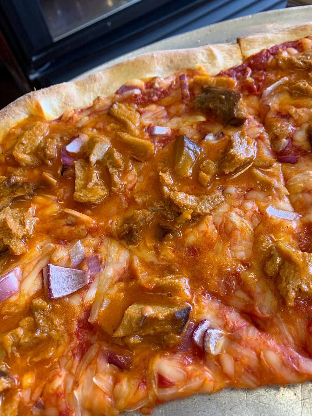 Bbq seitan pizza with red onions