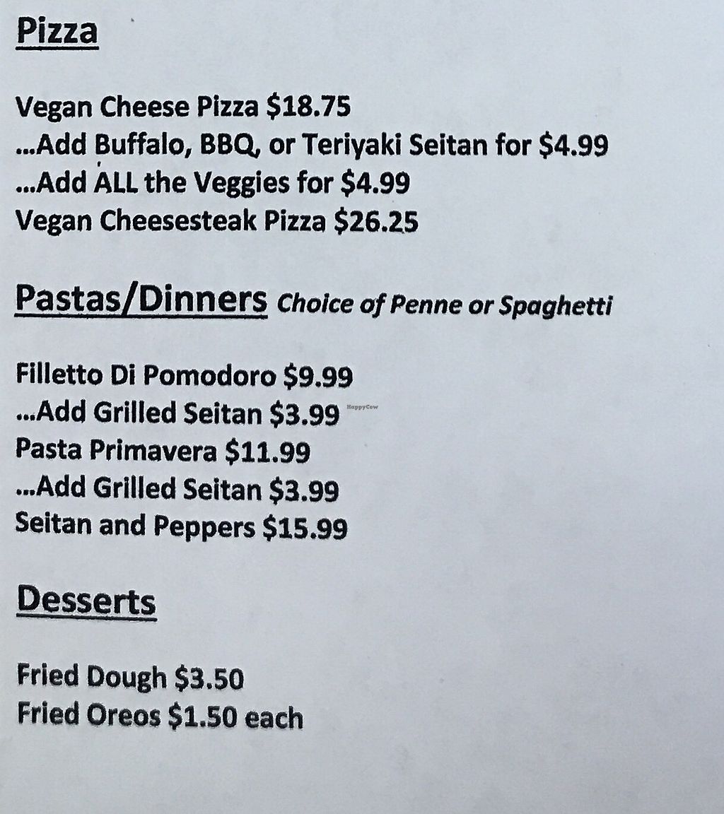 Current Vegan options at Pizza Mia (New Windsor)