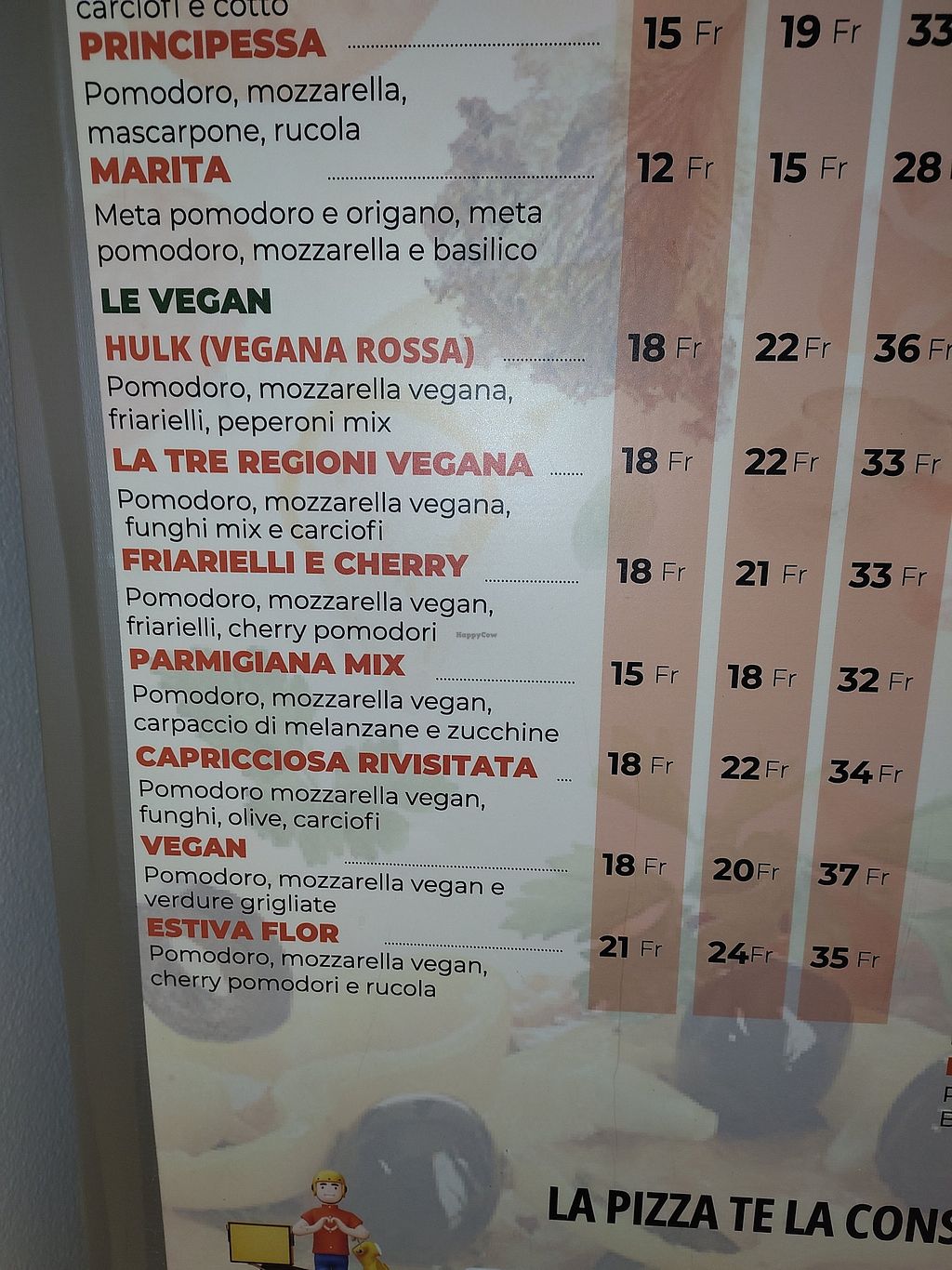 Seven different vegan pizzas to choose from. Not too pricey.
