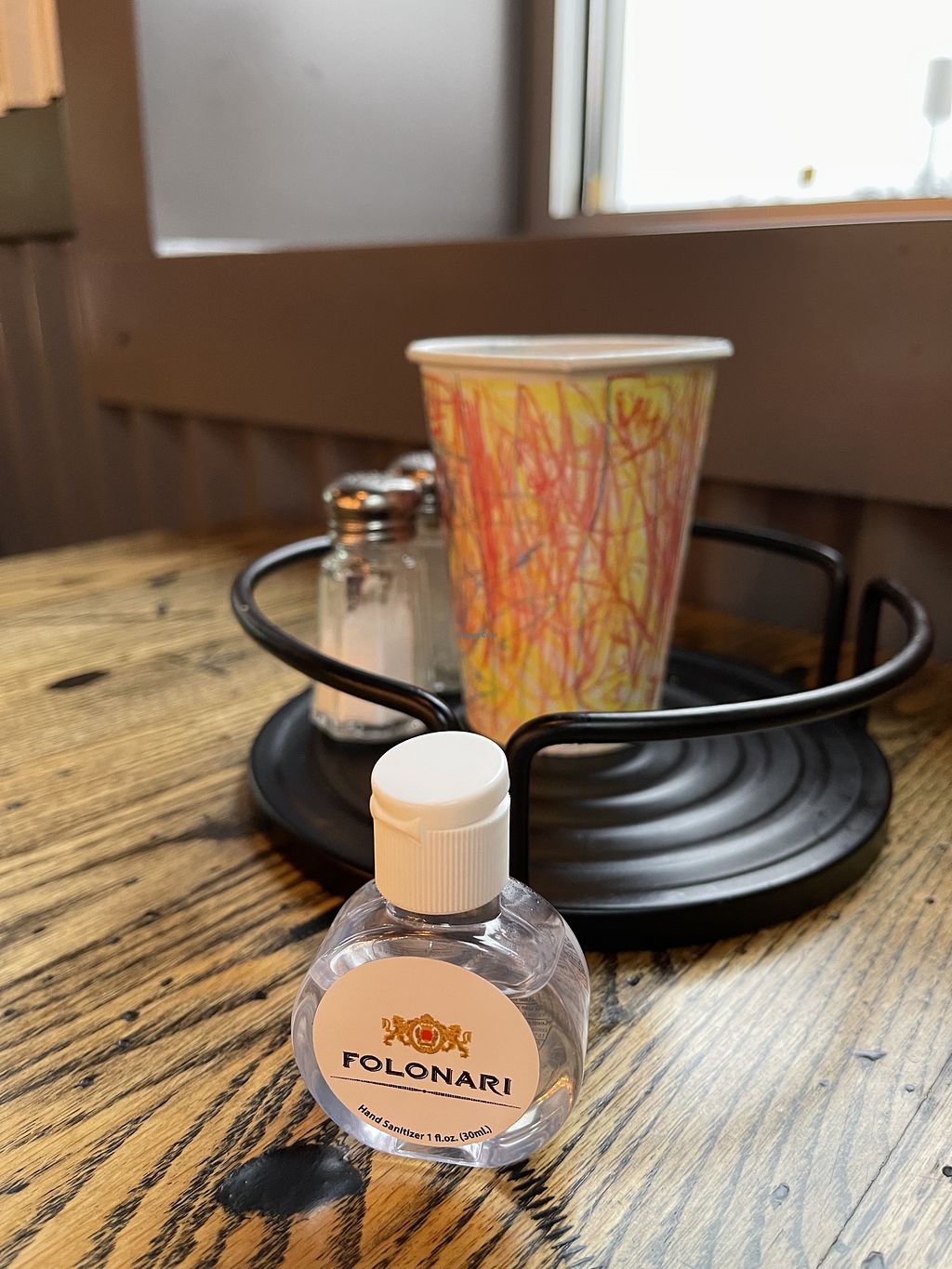 Hand sanitizer on table but no chilli peppers