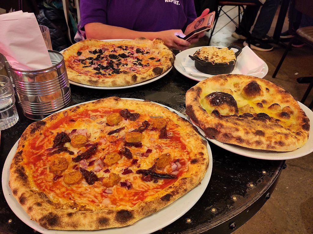 A cool spot with plenty of options and a great atmosphere. For £12 you can make your own pizza with an unlimited number of toppings. They have vegan mozzarella (which tastes great with none of the funky after taste some vegan cheeses have) and a variety of vegan toppings (BBQ pulled jackfruit, pepperoni, Tuscan sausage) as well as the usual veggie toppings. I went for the Tuscan sausage, red onion, sundried tomato and caramelised pineapple - the sausage was so tasty with a proper bang of spice and the caramelised pineapple was divine. The dough is so light and fluffy and all in all this was probably the best vegan pizza Ive ever had. I also tried the vegan mac n cheese which I enjoyed. They have vegan garlic bread and vegan dough balls as well and a great cocktail menu. Only thing missing was a vegan dessert option