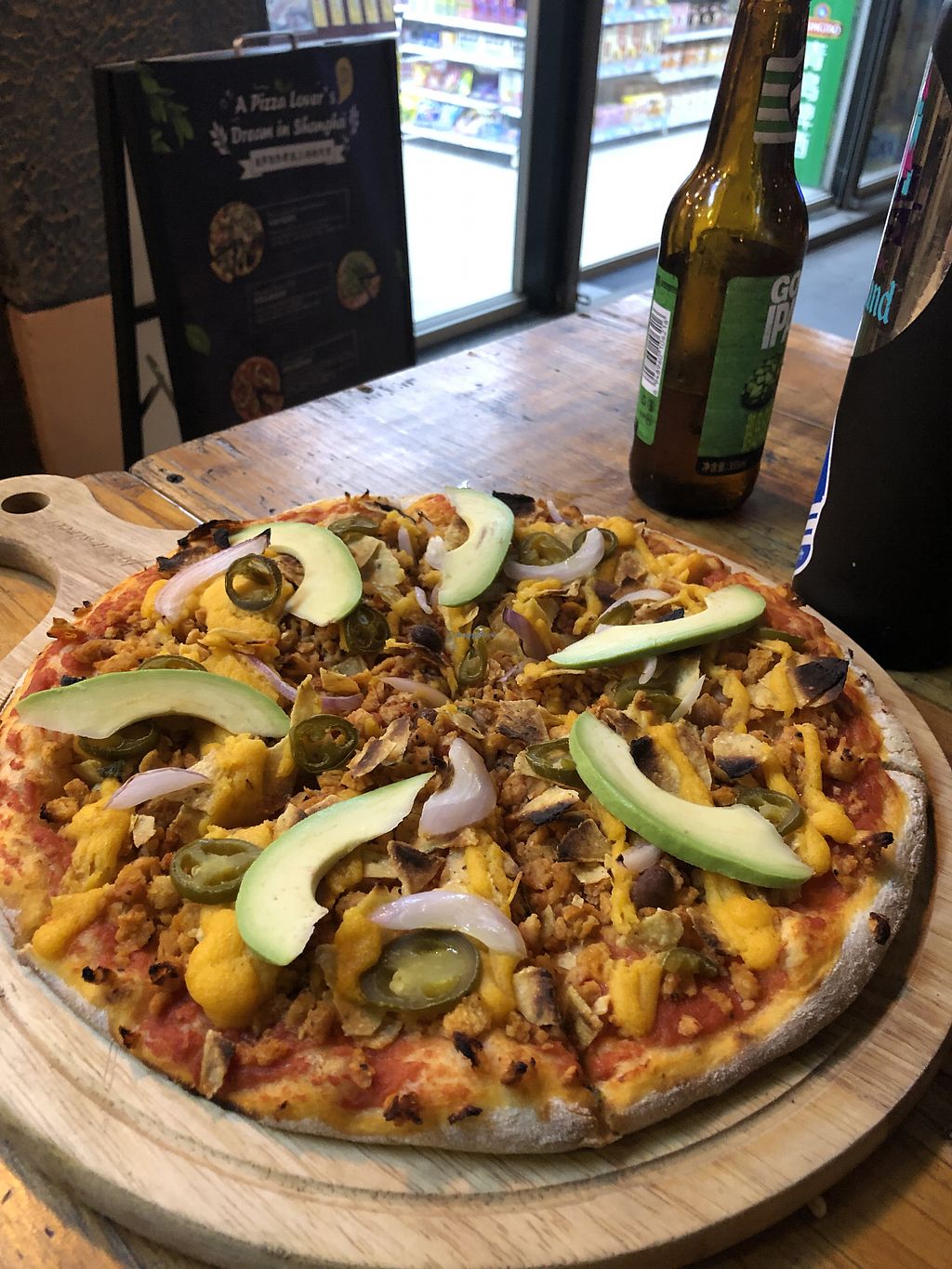Vegan pizza parmigiana, with coconut cheese, eggplants, olives and tomβ¦